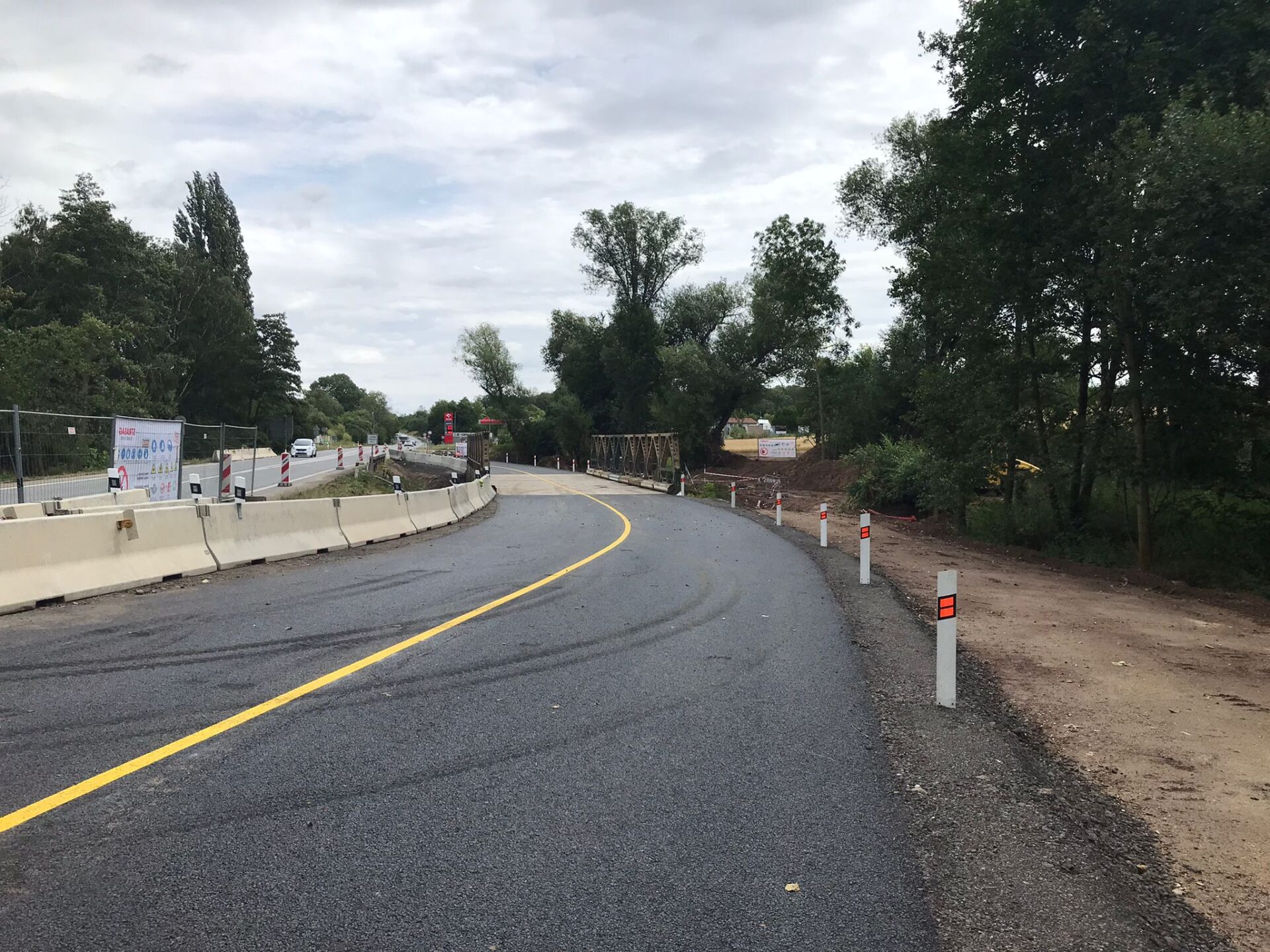 Už od zítřka tedy začneme starý most po částech rozebírat a na jeho místě stavět nový. Za tím účelem jsme vybudovali v místě prací, přes potok Bušinec, souběžné mostní provizorium, po kterém bude vedena veškerá doprava v režimu 1+1, jedním jízdním pruhem v každém směru, rychlostí maximálně 30 km/h.