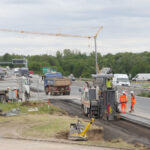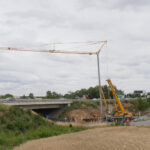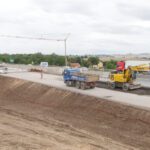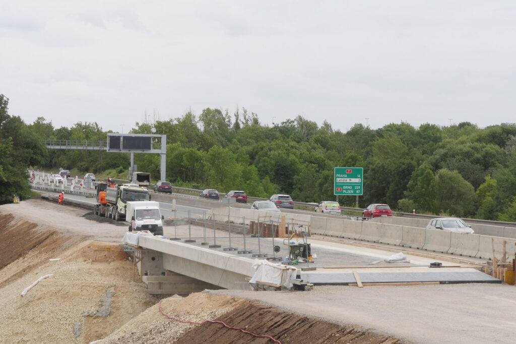 Aktuálně probíhají pokládky konstrukčních vrstev vozovky na pravém jízdním pásu včetně přechodových oblastí. Před pár dny jsme také dokončili zmonolitnění nové a původní části pravého mostu. Současně probíhá odkop zářezu v místě budoucího připojovacího pruhu směr Slaný. Na levé straně je dokončován archeologický výzkum v místě budoucího zářezu a byly započaty práce na rozšíření náspu u mostu a směrem do Prahy.