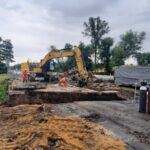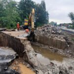 Po odfrézování asfaltového souvrství z mostovky jí začínáme po kusech bourat. Diagnostika totiž prokázala špatný stav nosné konstrukce, do které navíc vlivem nefunkčního izolačního systému zatékalo. Naopak spodní stavba je v uspokojivém stavu, a tak na ní v průběhu následujících měsíců postavíme most nový. Nejenže tím prodloužíme jeho životnost, ale zároveň se tím zvýší i bezpečnost silničního provozu, protože most bude opatřen mimo jiné zcela novým zábradlím. Práce navíc budou spočívat i v úpravě koryta potoku pod mostem tak, aby ho voda nepodemílala.