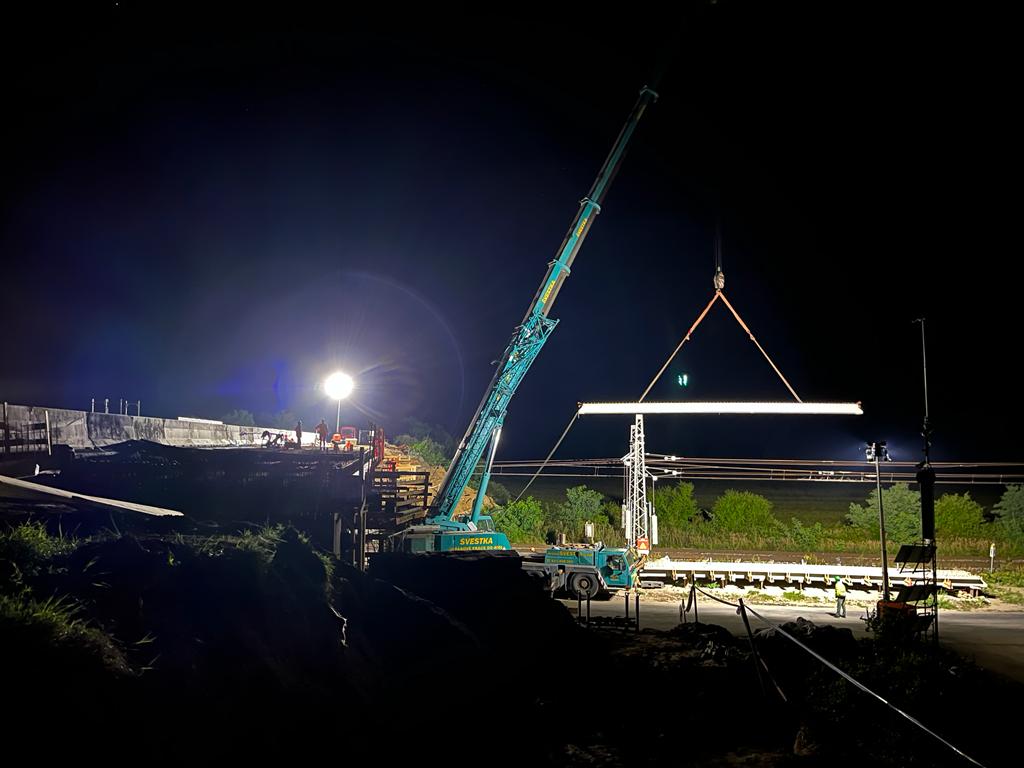 Práce na rekonstruovaném mostu s evidenčním číslem 32-001e na silnici I/32 u Choťánek na Nymbursku se tentokrát přesunuly do nočních hodin. Důvodem byla manipulace s těžkými a rozměrnými částmi konstrukce, které bylo nutné usadit.