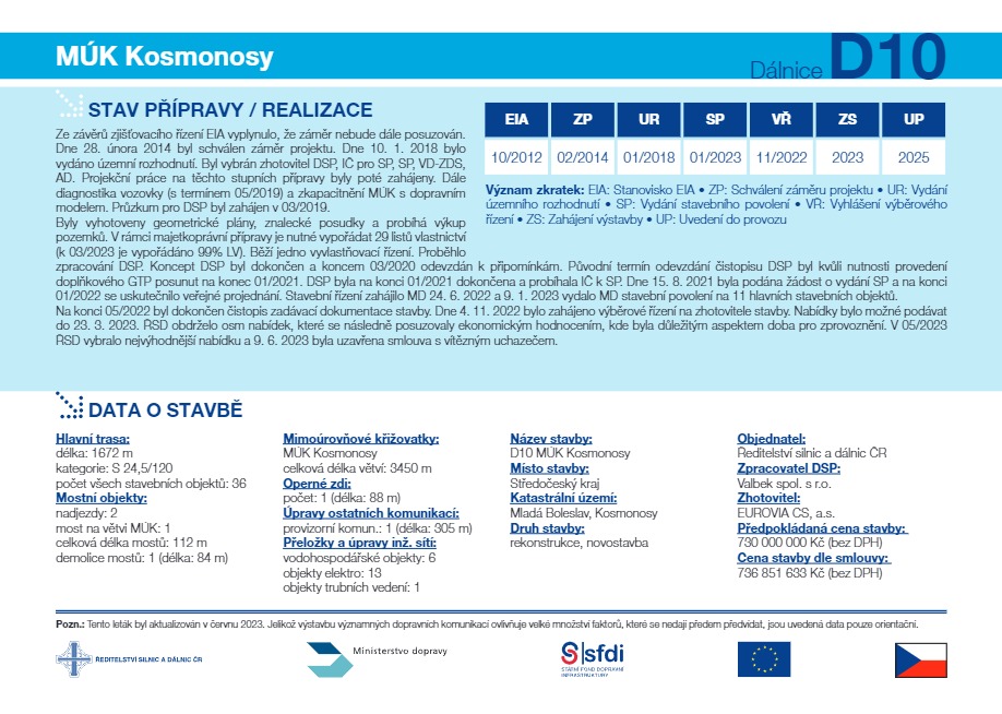 „Úprava křižovatky je nutná změna s ohledem na rozvoj průmyslové zóny východně od dálnice a bude sloužit k plynulému a bezpečnému napojení celé lokality východně i západně od dálnice D10 včetně areálu Škoda Auto. Dalším důvodem je rovněž stavba plánované přeložky silnice I/16 v úseku Mladá Boleslav – Martinovice, která bude do křižovatky v budoucnu zaústěna. V rámci její přípravy je již zpracována dokumentace pro stavební povolení a probíhá proces majetkoprávního vypořádání. Zahájení stavby chystáme na rok 2025, kdy zprovozníme dnes zahajovanou přestavbu mimoúrovňové křižovatky,“ uvedl generální ředitel ŘSD Radek Mátl.