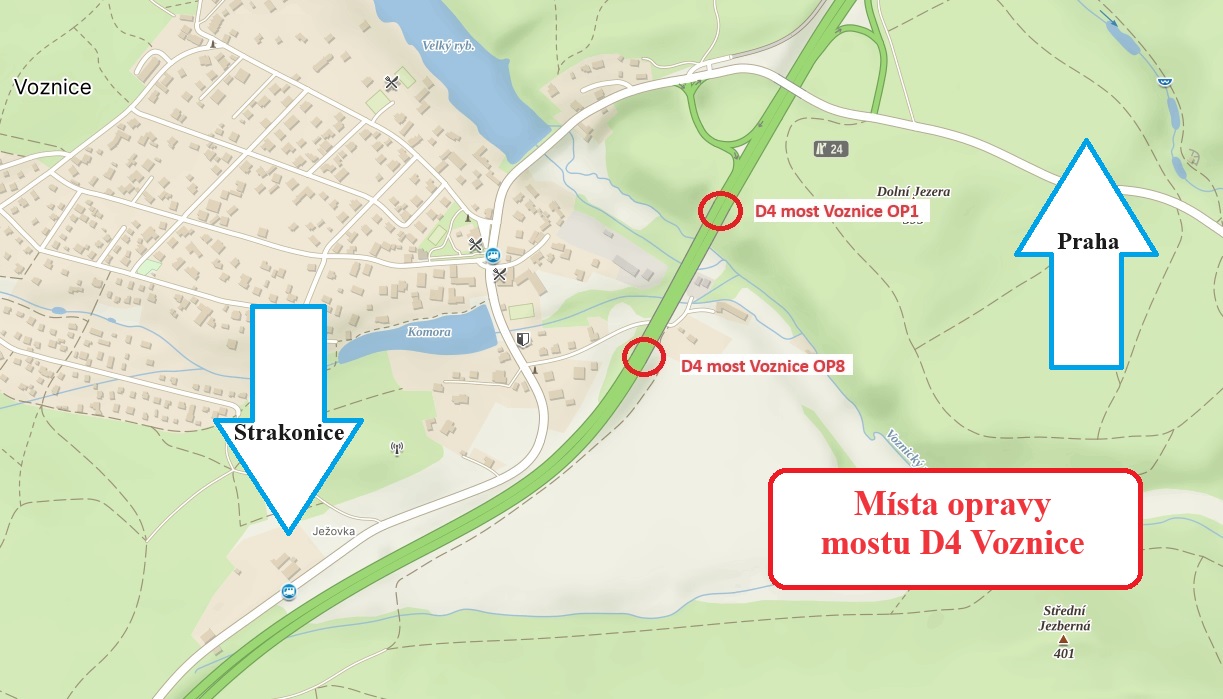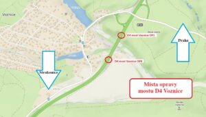 Jde o most na dálnici D4 s evidenčním číslem D4-019..1 u Voznice, přes Voznický potok, ve směru na Strakonice. Jeho opravu zahajujeme v pátek 29.9. a potrvá přibližně měsíc a půl. V místě prací dojde k omezení dopravy.