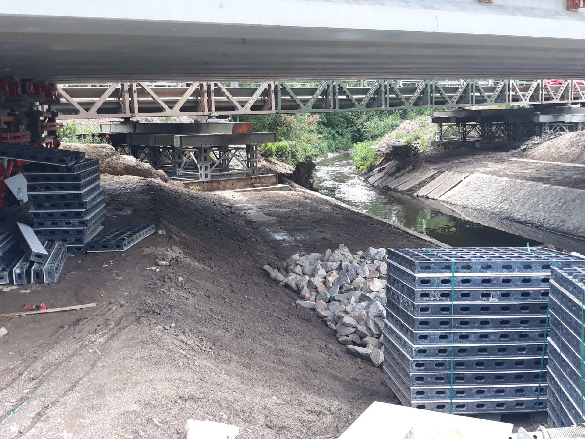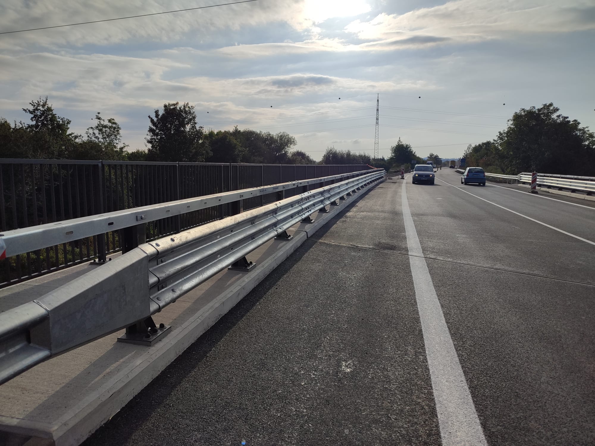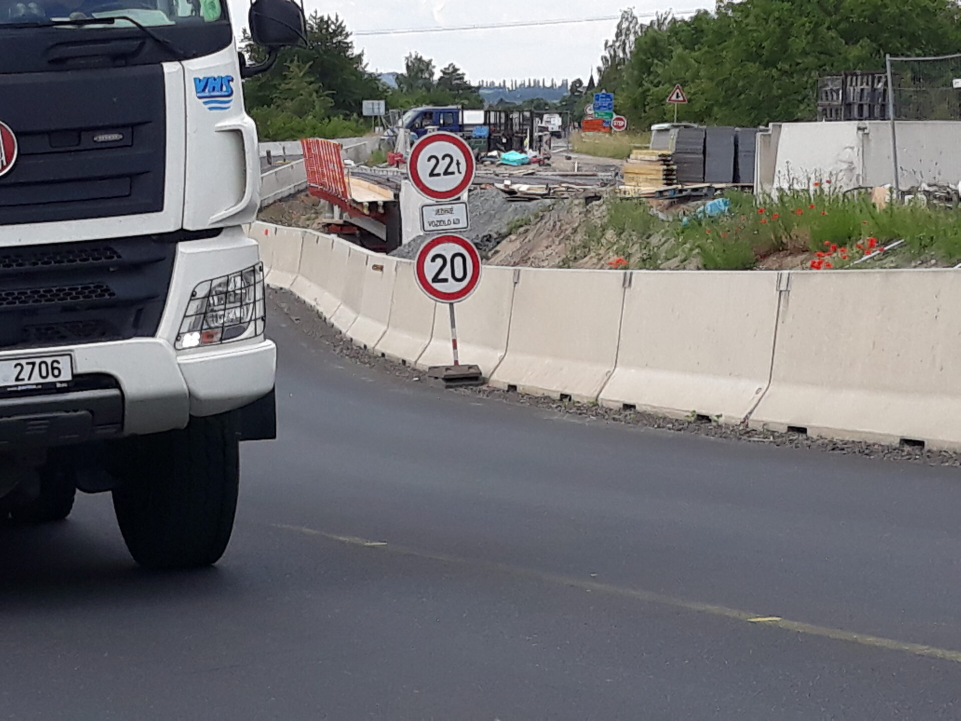 Nejkomplikovanějším bodem celé stavební operace byla výměna mostu přes Vrchlici. Starý, který už s ohledem na svůj špatný stav nevyhovoval, jsme zdemolovali a na jeho místě postupně vystavěli nový. S tím zároveň souviselo vybudování mostního provizoria, na které byla převedena veškerá doprava. Právě to teď postupně demontujeme, protože nový most, stejně jako celý zrekonstruovaný úsek byl uveden do plného provozu. Dokončovací práce spočívají v instalaci nových svodidel a obnovení vodorovného dopravního značení. V těchto pracovních místech dochází k lokálnímu omezení dopravy, které spočívá především ve snížení rychlosti na maximálně 30 km/h.