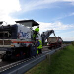 Jako první přišel na řadu jízdní pás ve směru na Mladou Boleslav, mezi lesem u Obrub až po železniční přejezd, kde došlo k odfrézování starého asfaltového souvrství.
