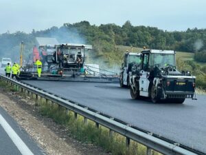 V těchto dnech dokončujeme rekonstrukci poslední části dálnice D5 mezi km 4,6 a 8,9 ve směru na Rozvadov, kde dochází k pokládce nových asfaltových vrstev. Doprava je místem prací vedena dvěma zúženými pruhy v každém směru a rychlostí sníženou na 80 km/h maximálně.