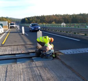 Jedná se o havarijní opravu mostních závěrů nad opěrami OP1 a OP8 pravé poloviny dálnice D4 ve směru Strakonice. Stávající mostní závěry z roku 2000 jsou ve špatném stavu a jsou provizorně překryty ocelovými deskami, které vytvářejí nízké příčné prahy ve vozovce a výrazně tak snižují komfort jízdy.