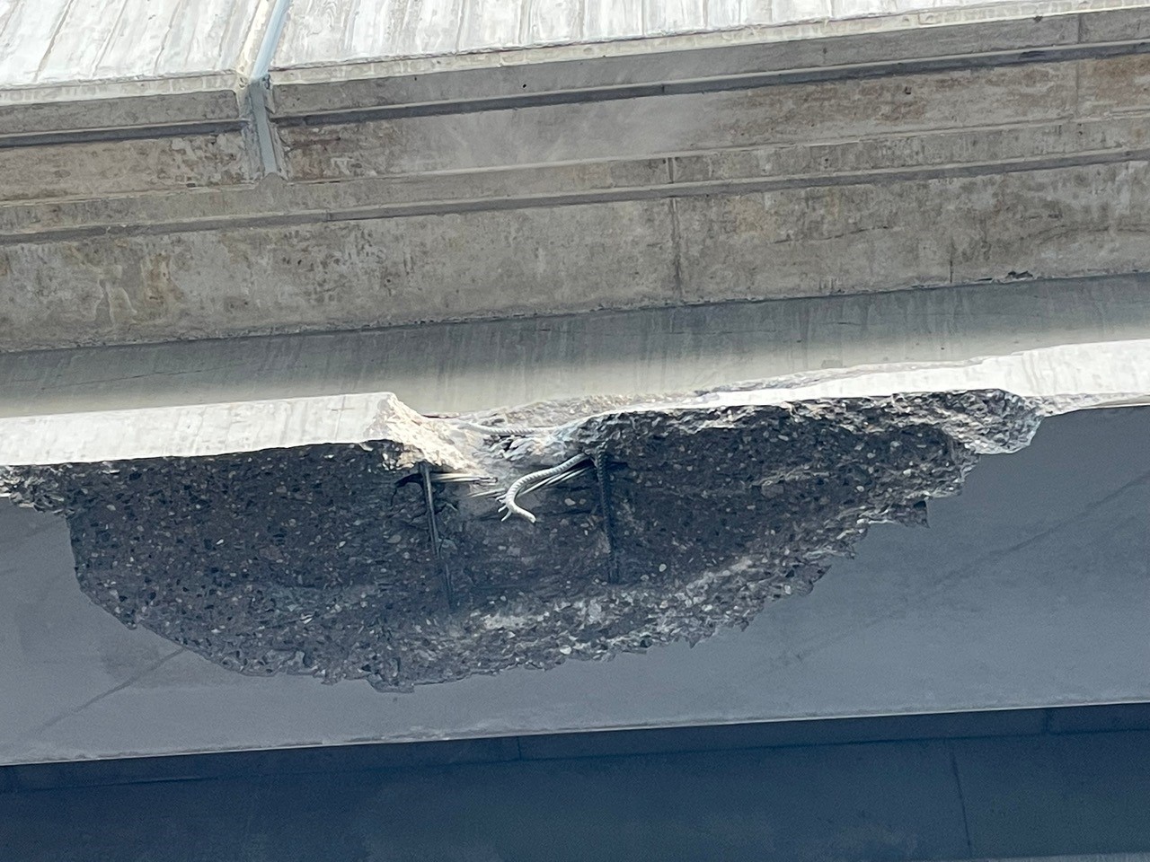 Práce spočívaly v opravě podhledu nosné konstrukce mostu, kde došlo k poškození tří nosníků. Doplněn byl chybějící beton v bodu střetu materiálem na bázi cementu. V místě s hloubkou poškození větší než 60 mm byla provedena síť chemicky vlepených kotevních prvků. Přerušená betonářská výztuž byla propojena příložkami svařením. Veškeré trhliny s tloušťkou nad 0,2 mm byly tlakově injektovány epoxidovou pryskyřicí. Místa s odštípnutým betonem byla vyplněna epoxidovým tmelem. Po provedení opravy byly plochy poškozeného nosníku opatřeny ochranným sjednocujícím nátěrem.
