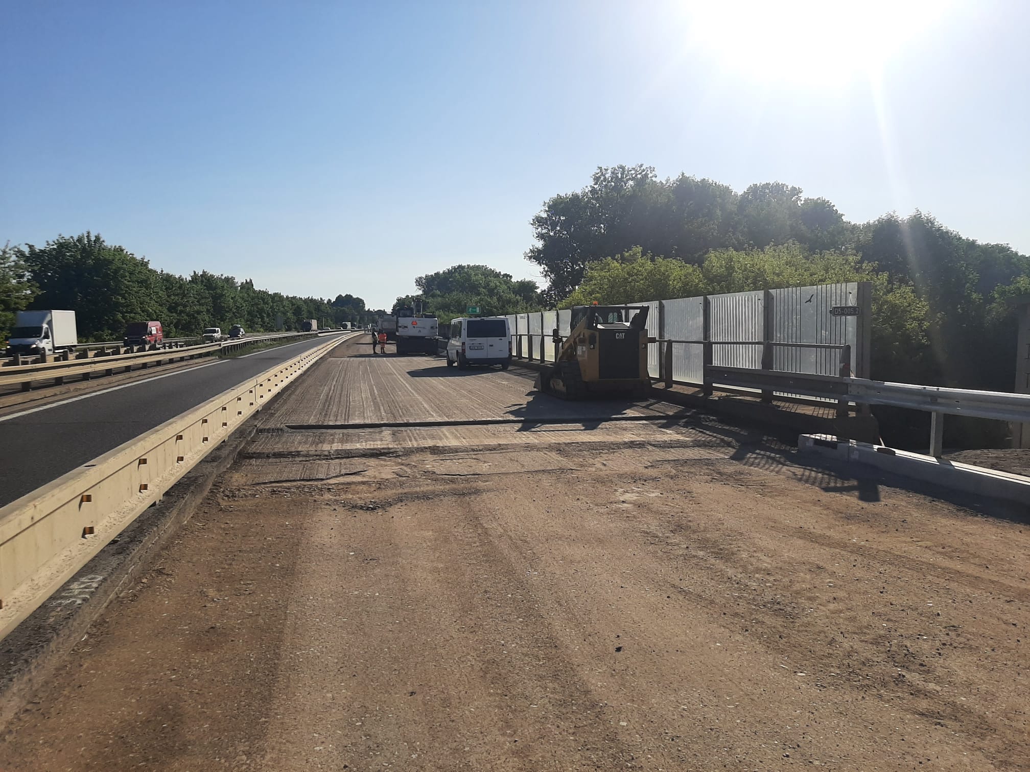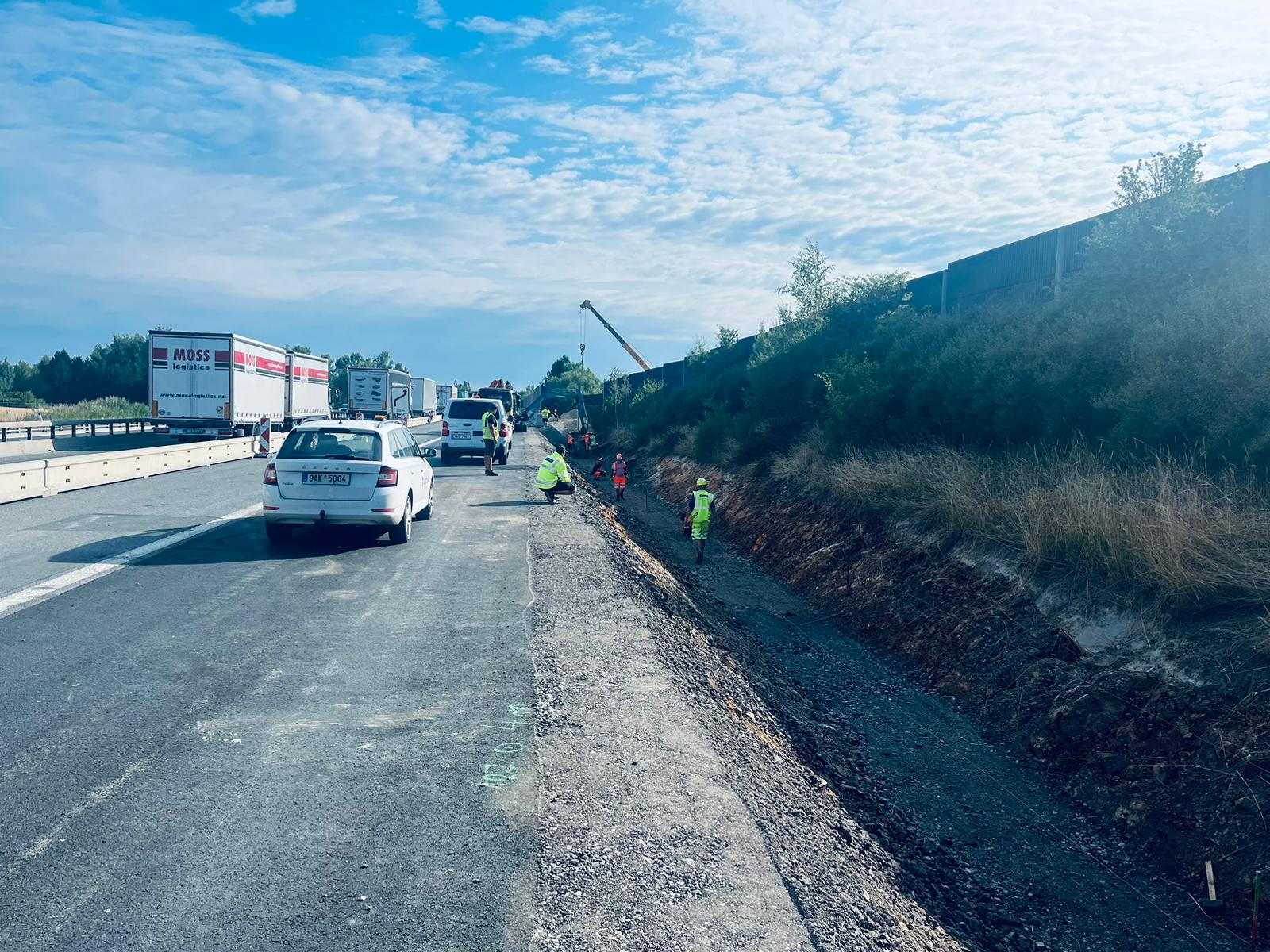 Oprava dálnice D5, konkrétně mezi 5. – 10. km, zahrnovala výměnu povrchu levého i pravého jízdního pásu, odpočívek i mostů. Součástí rekonstrukce vytíženého dálničního úseku, kterým denně, podle posledního sčítání dopravy, projede více než 50 tisíc vozidel byla také renovace protihlukových stěn. Dále byla provedena oprava a doplnění prvků odvodnění, úprava nezpevněných krajnic, sanace zárubní zdí a doplnění oplocení. A nakonec došlo i k výměně betonových a ocelových svodidel. Průběh prací dokumentují fotografie níže.