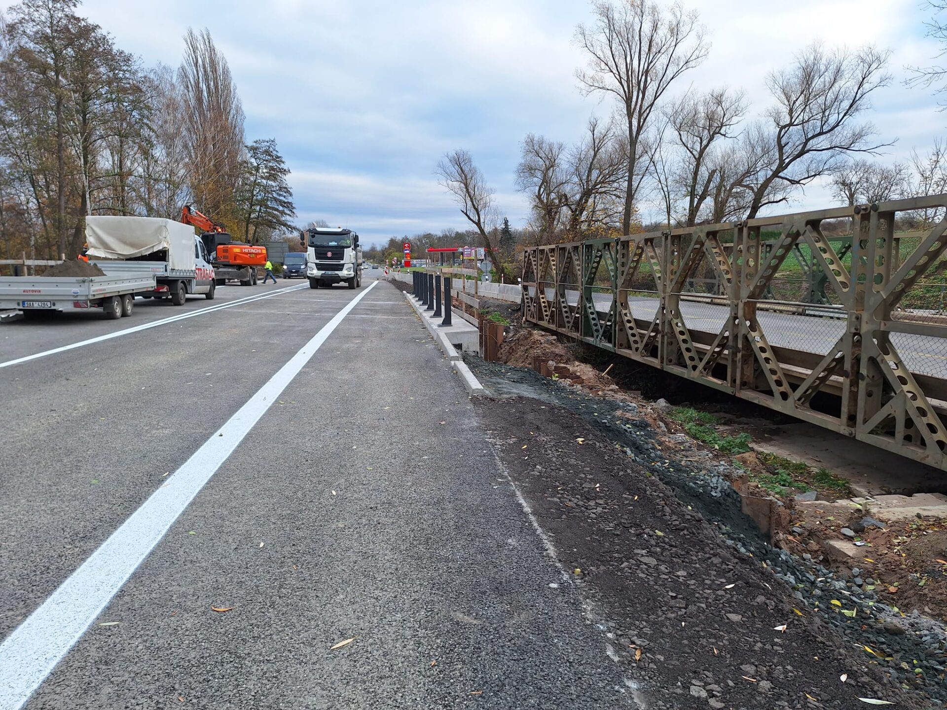 Stavební operace si vyžádala dopravní omezení, které dneškem končí. Po celou dobu výstavby byla totiž doprava úsekem, kterým denně projede na 10 tisíc vozidel, vedena po mostním provizoriu. To od této soboty začneme demontovat a nový most počínaje sobotou 2. prosince uvedeme do plného provozu.