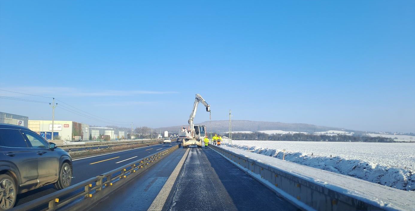 Práce na přestavbě mimoúrovňové křižovatky D10 Kosmonosy přestaly ovlivňovat provoz na dálnici. Naší snahou je zajistit maximální bezpečnost dopravy v zimním období, v místě stavby. Znovu se k operacím, které si vyžádají omezení vrátíme od 1. března příštího roku.