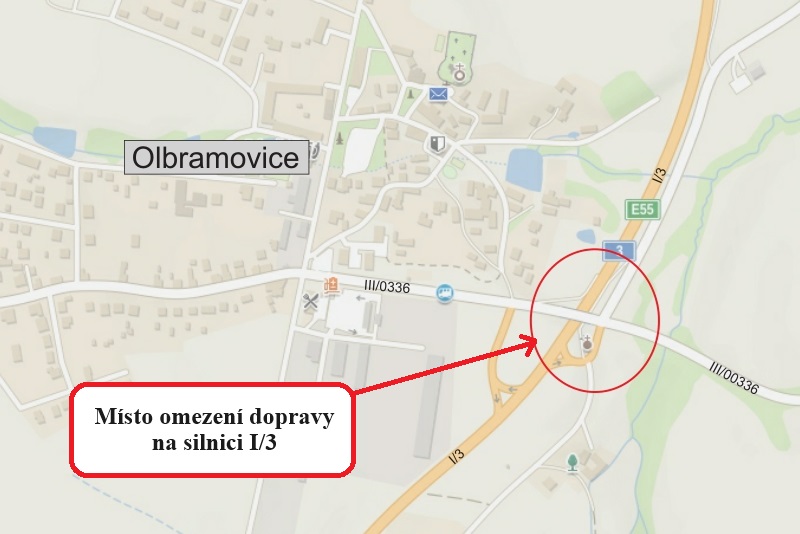 V loňském roce proběhla oprava nadjezdu po dopravní nehodě. Řidič nákladního vozidla měl špatně uložen bagr na valníku a chybně odhadl výšku své soupravy. Když jel po silnici I/3 a snažil se podjet nadjezd u Olbramovic, zavadil ramenem bagru o nosnou konstrukci mostu a uvízl pod ním.