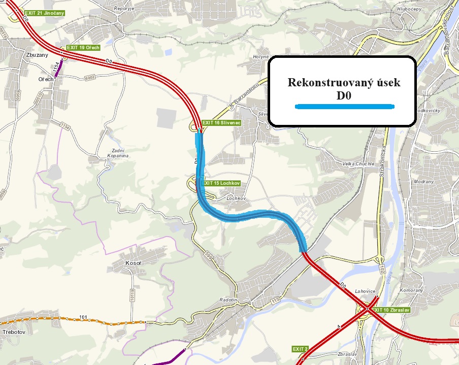 Stavba se dělí na dvě části. V první řadě půjde o rekonstrukci vozovky obou jízdních pásů stávající dálnice D0. V další fázi pak jde o fyzické rozšíření pravého jízdního pásu o 0,75 m na celkovou šíři zpevnění 11,5 m, což umožní v případě potřeby např. při rekonstrukcích, vedení dopravy v režimu 2+2 jízdní pruhy. Samotná rekonstrukce bude spočívat ve výměně asfaltobetonového krytu vozovky za cementobetonový na pravém i levém jízdním pásu od severního portálu Lochkovského tunelu až po mimoúrovňovou křižovatku Slivenec (EXIT 16), km 13,416 – 16,245. Diagnostický průzkum v tomto úseku prokázal, že vozovka vykazuje nehomogenní a místy sníženou únosnost. Lze konstatovat nedostatečné tloušťky hutněných asfaltových vrstev zejména s ohledem na skladbu konstrukce s nestmelenou podkladní vrstvou. Z toho důvodu byla navržena oprava formou částečné rekonstrukce s pokládkou nové dostatečně únosné podkladní vrstvy a nového cementobetonového krytu tak, aby byla vybudována dostatečně únosná konstrukce vozovky pro dané dopravní zatížení. To v těchto místech dosahuje aktuálně intenzity cca 50 tisíc aut denně, z toho cca 40% tvoří vozidla nad 3,5 t. Vzhledem k přítomnosti vrstvy štěrkopísku v podkladu se jako součást částečné rekonstrukce navrhuje také recyklace spodní podkladní vrstvy za studena na místech s cementem, k vytvoření dostatečně únosného podkladu pro následnou pokládku konstrukčních vrstev.