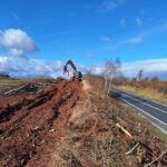 Na celém území přestavby se v tuto chvíli intenzivně pracuje na odstraňování především náletových křovin a řádově stovek stromů. Ty největší mohou mít průměr kmene až 0,5 m. Aby práce postupovaly rychleji, je využívána těžká technika. Tuto činnost v současné době znesnadňuje podmáčený terén a poměrně jílovitá půda, do které se mechanizace propadá o desítky centimetrů. Práce provoz na silnici I/7 výrazněji neomezují. Lokálně je uzavřena pouze zpevněná krajnice a maximální rychlost je zde snížena na 60 km/h.