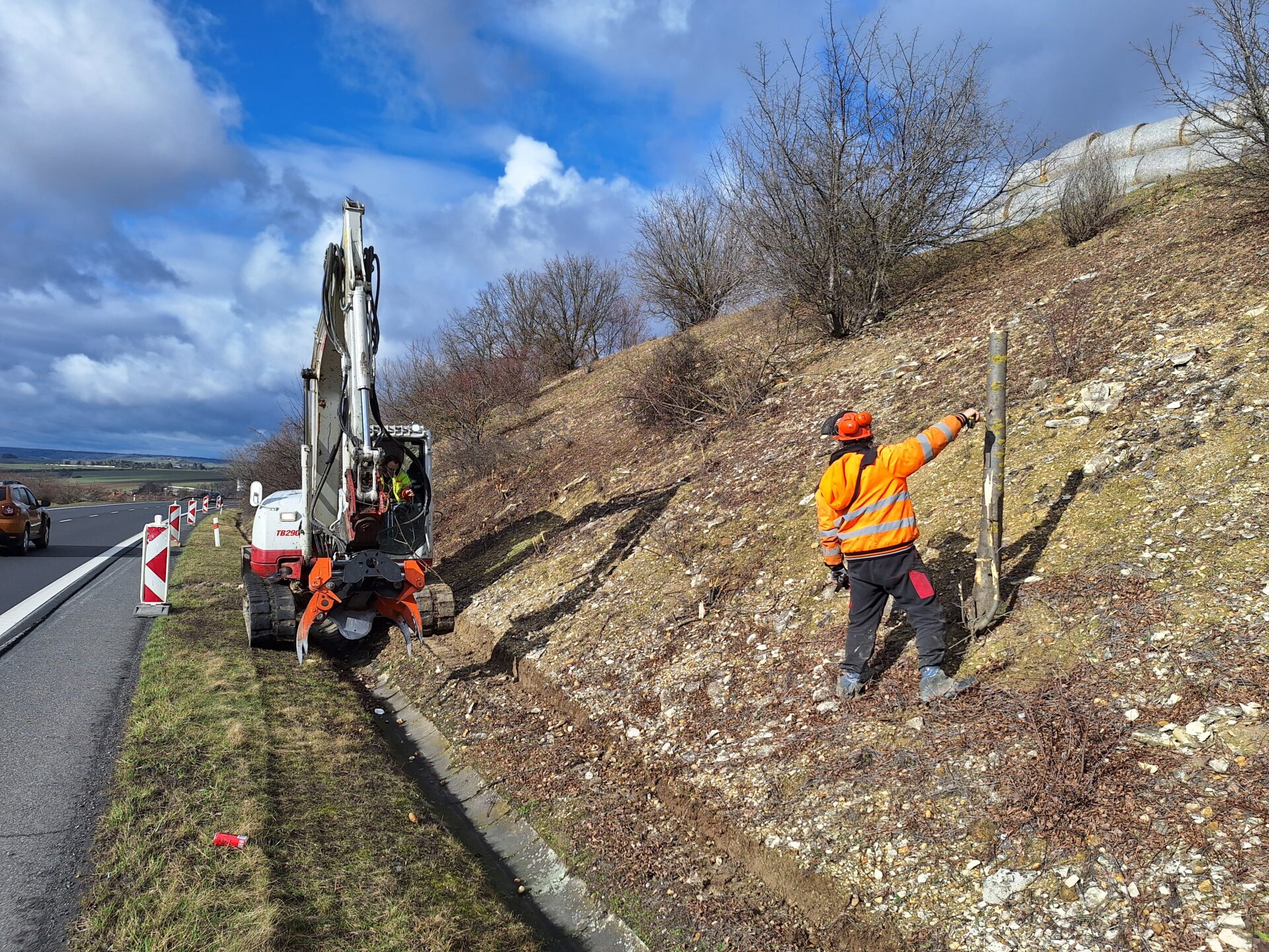 Odstraňování keřů, kácení stromů, skrývka zeminy a místy už také záchranný archeologický výzkum. To všechno se teď odehrává podél silnice I/7 na trase Knovíz – Slaný-západ – Kutrovice – Panenský Týnec.