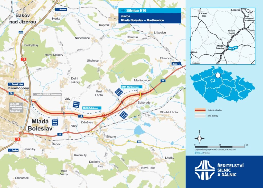 Krajský úřad Středočeského kraje vydal stavební povolení pro 8200 metrů dlouhou přeložku silnice I/16 mezi Mladou Boleslaví a Martinovicemi. Součástí stavby bude 7 mostů, 3 nadjezdy a 2 mimoúrovňové křižovatky.