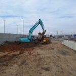 Nejintenzivnější činnost se aktuálně soustřeďuje podél dálnice ve směru na Prahu vpravo. Zde se mimo jiné buduje i systém odvodnění, pracuje se na nové sjezdové i nájezdové větvi. Současnému postupu a tempu prací nahrává stabilní počasí beze srážek a bez velkých výkyvů teplot.