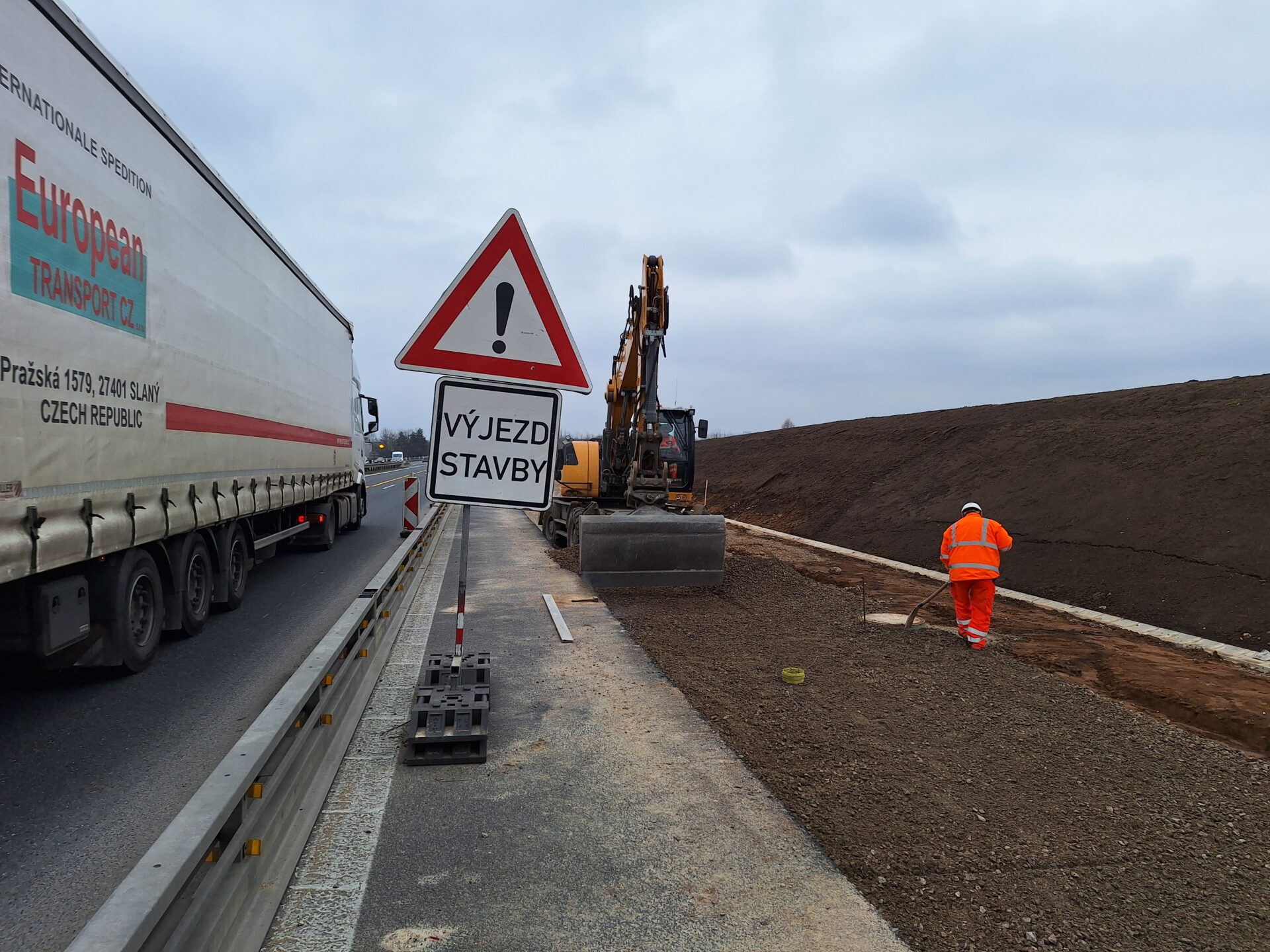 Místem prací, mezi 2. – 3. km, se jezdí s omezením, sníženou rychlostí na 80 km/h maximálně a v režimu 2+2 zúžené pruhy s tím, že ve směru na Prahu je doprava převedena do protisměru. EXIT 3 směr Praha zůstává nadále uzavřen.