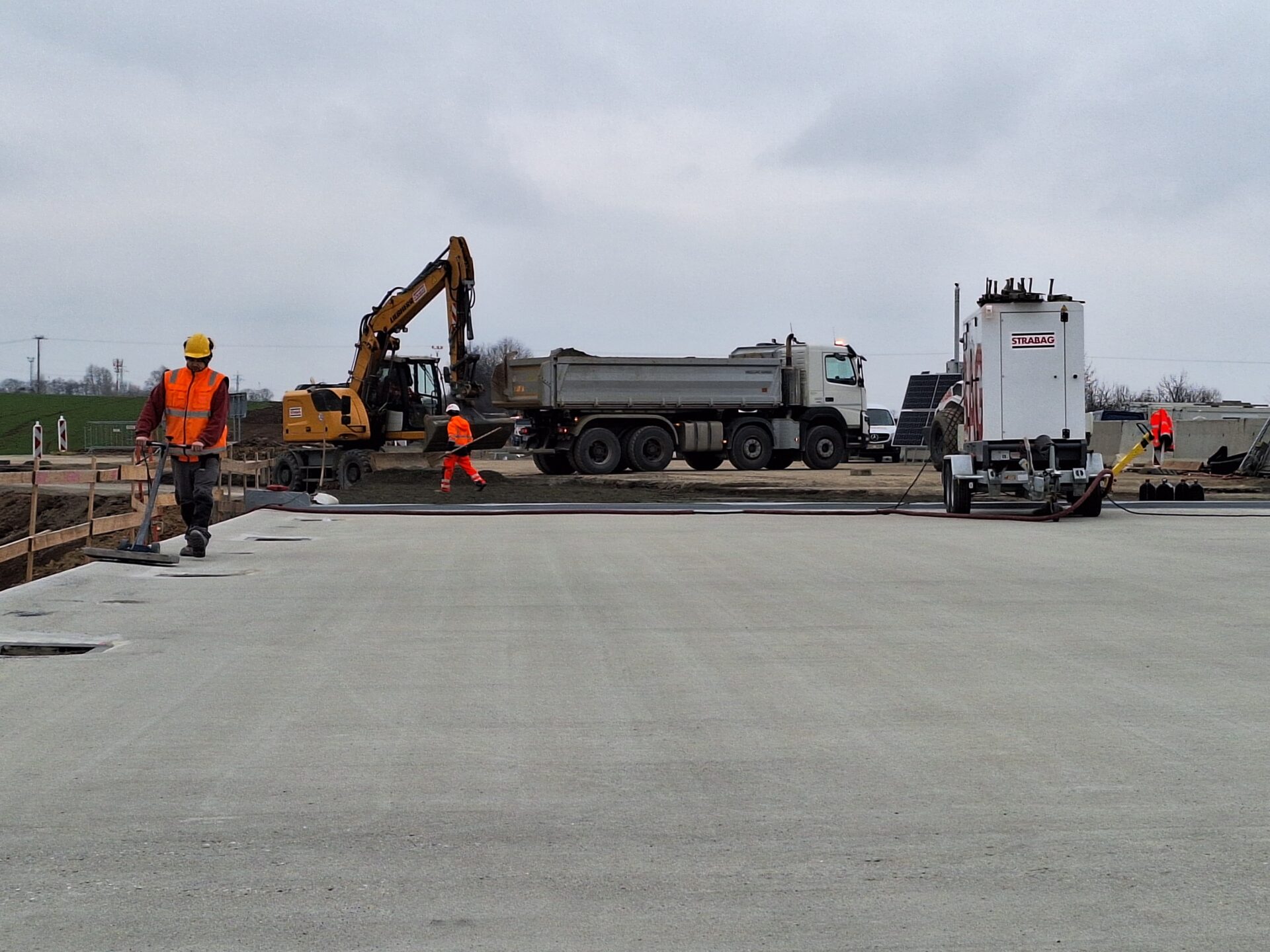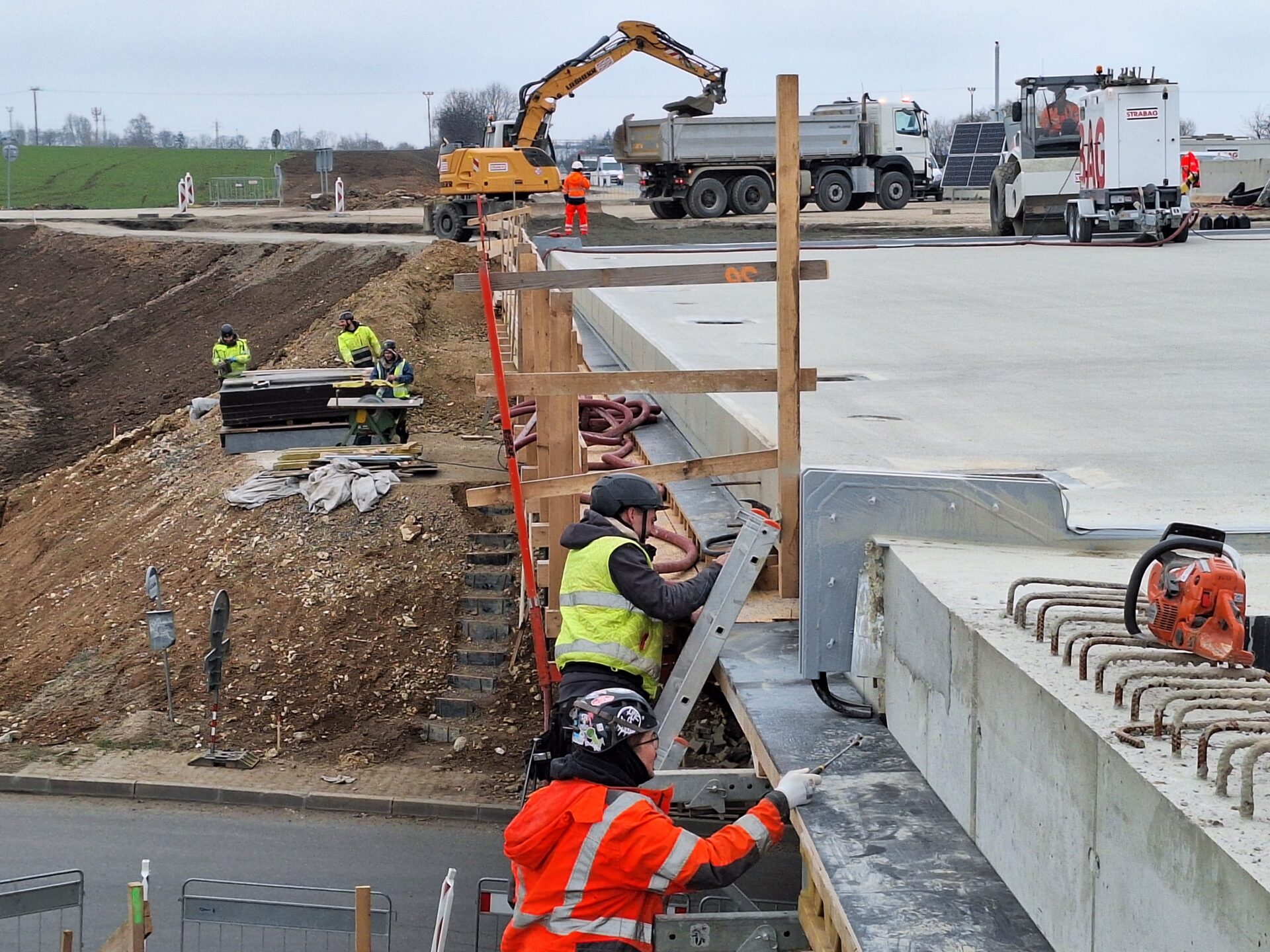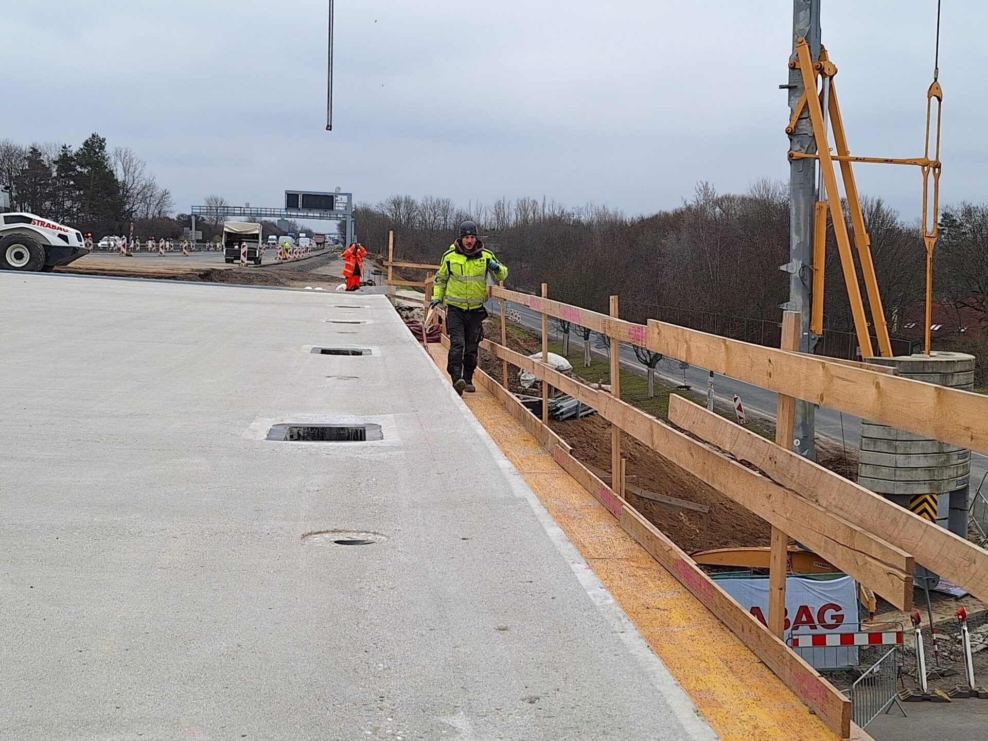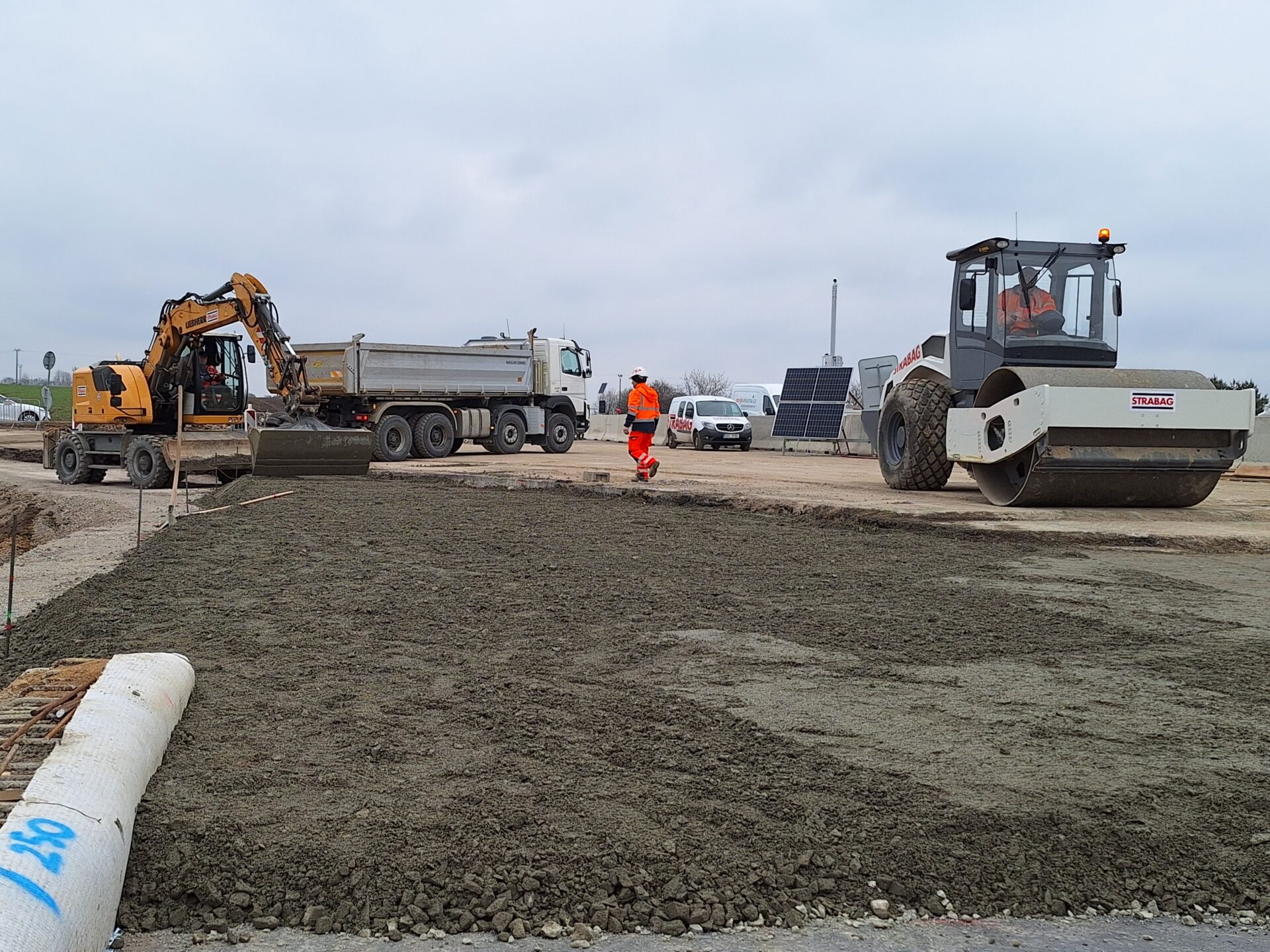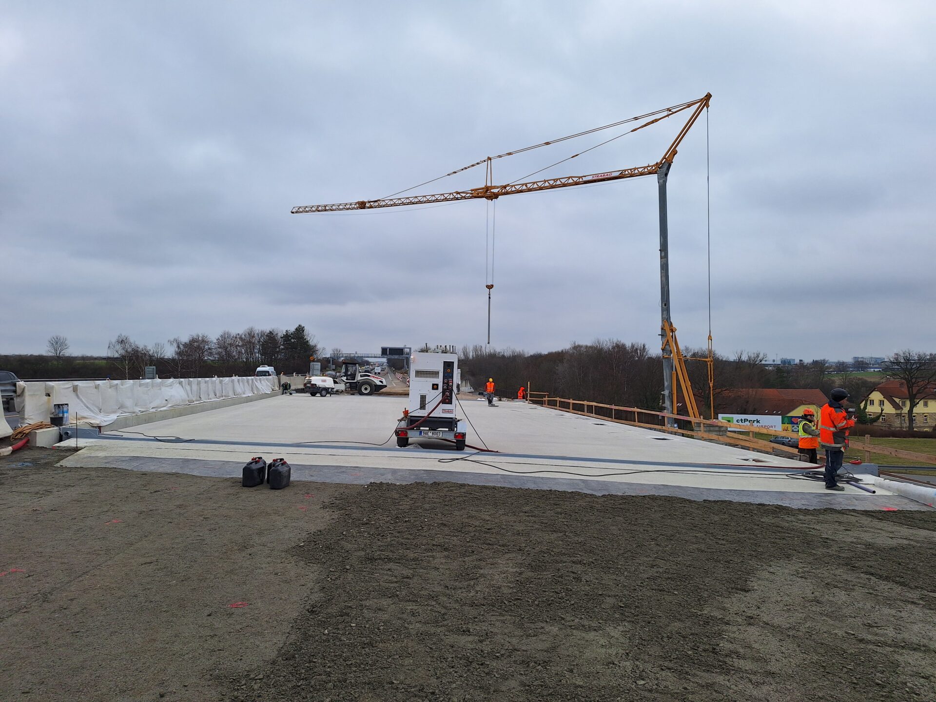 Další důležitou etapu má za sebou přestavba mimoúrovňové křižovatky na dálnici D7 u Kněževsi, kterou doplňujeme o přídatné pruhy. Testy tvrdosti okolo 500 kubíků použitého betonu na mostech potvrdily jeho kvalitu.