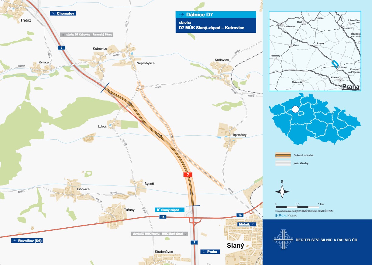Právě v těchto dnech vrcholí výběrové řízení na zhotovitele dostavby dálnice D7 v úseku Slaný-západ až Kutrovice. Trasu dlouhou více než tři a čtvrt kilometru bychom chtěli dostavět do dvou let.