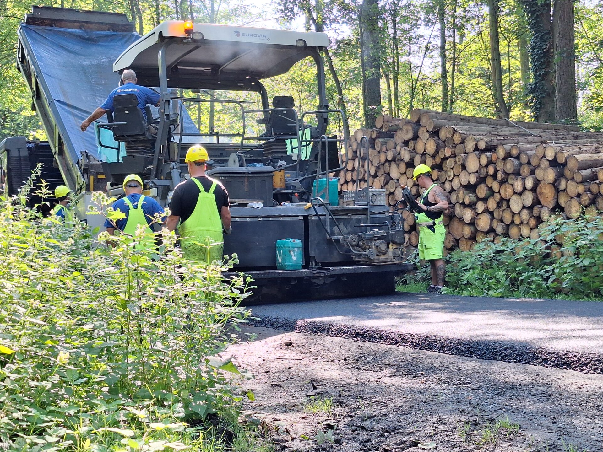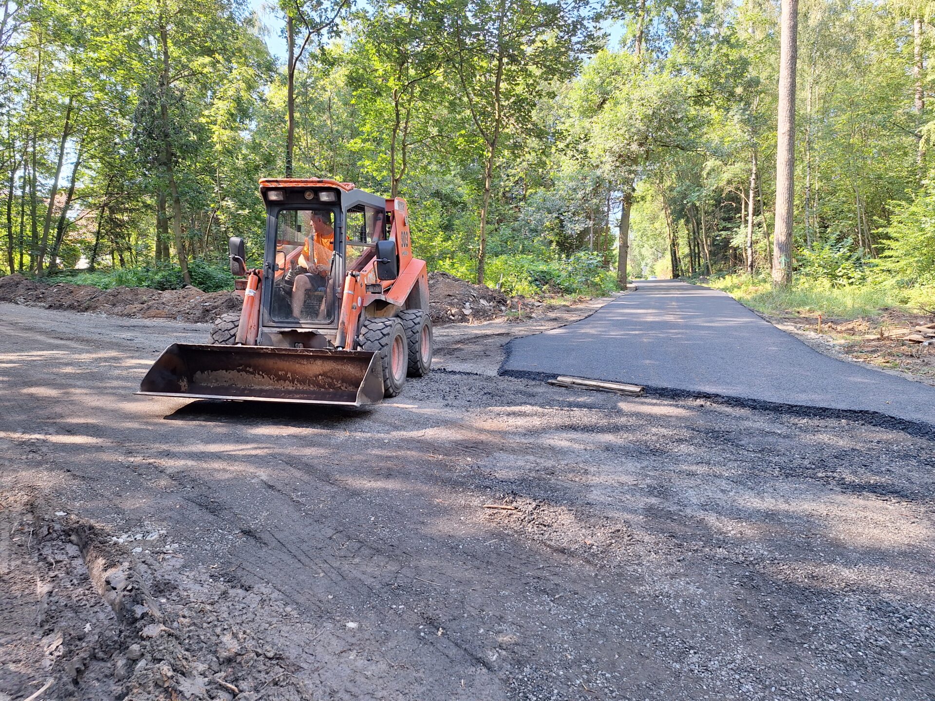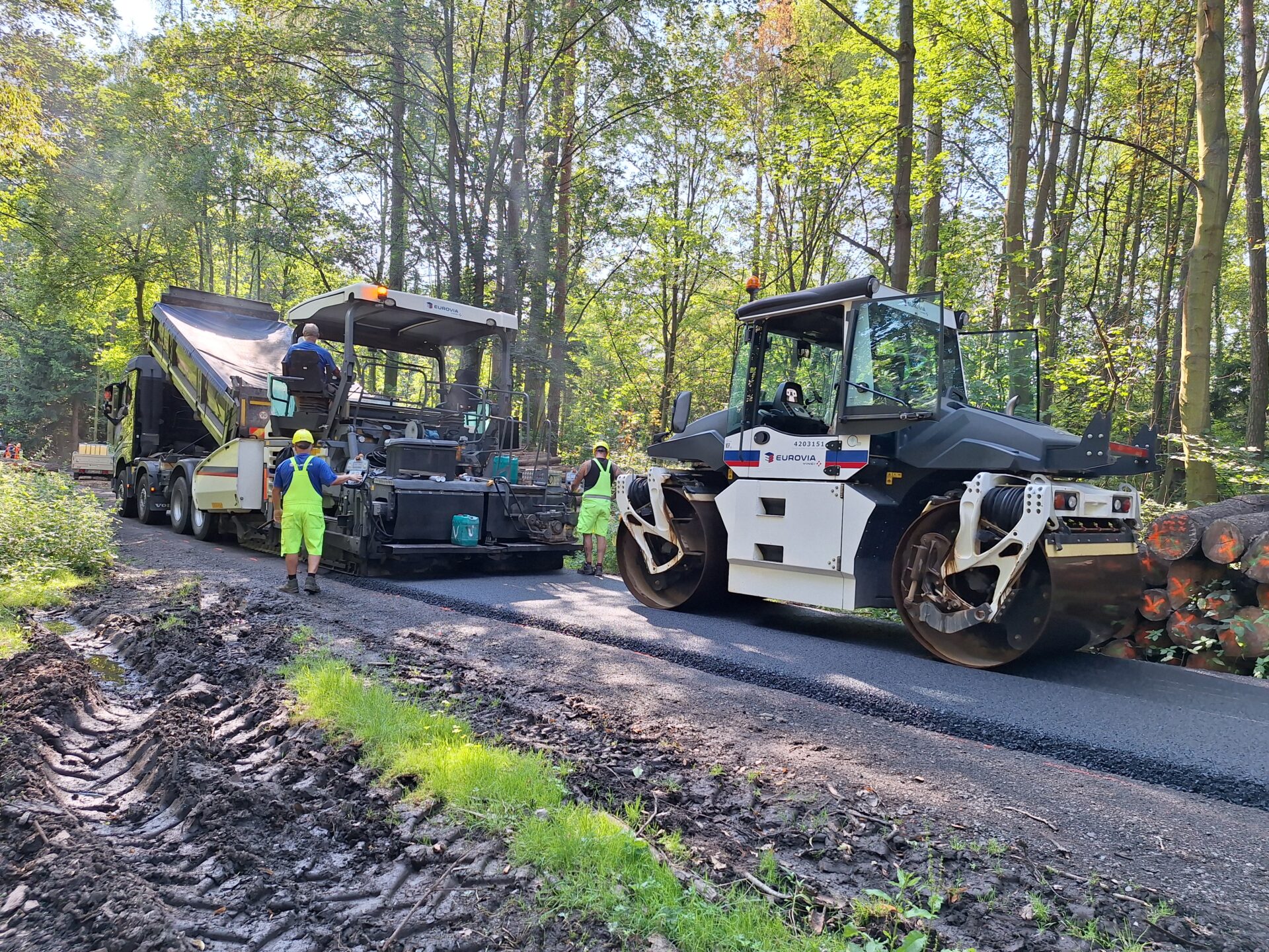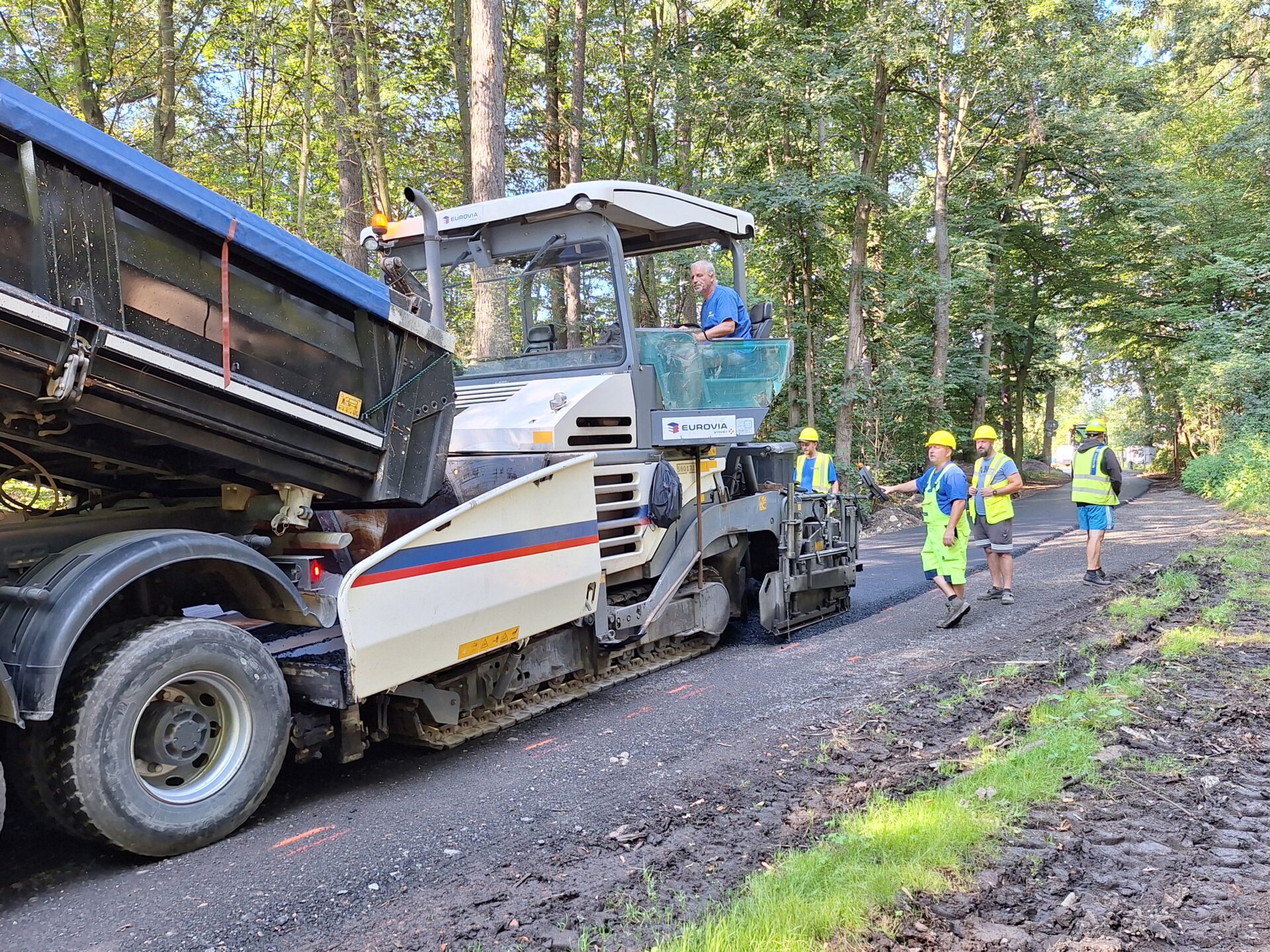 Jako takzvaná přístupová komunikace byla zvolena ulice Zelená, která v severních partiích města odděluje zastavěné území od místního lesa. Jde o nezpevněnou komunikaci, ze které právě v těchto dnech budujeme plnohodnotnou silnici s asfaltovým povrchem, po které bude veden provoz. Délka takto upravovaného úseku je 1375 m a využito na něj bude okolo 1000 tun asfaltové směsi. Zbývá dokončit posledních cca 300 m. Každý den zde do směny nastupuje na 20 dělníků.
