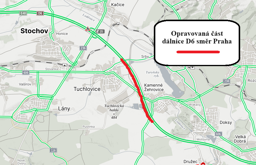 Ve čtvrtek 1. srpna 2024 zahajujeme plánovanou opravu více než 5 km dlouhého jízdního pásu dálnice D6 směr Praha mezi Kamennými Žehrovicemi a Družcem. Práce částečně omezí provoz, a to na pouhých 44 dní.