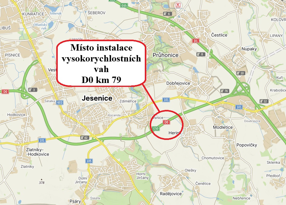 Předmětem plnění veřejné zakázky je realizace vysokorychlostního vážení vozidel pomocí nepřenosných vysokorychlostních vah (WIM). Zařízení bude instalováno přímo ve vozovce dálnice D0 v km 79, v obou směrech, přibližně v polovině úseku mezi Modleticemi a Jesenicí. Každý den projede tímto místem, podle posledního sčítání, na 40 tisíc vozidel, z toho nákladní a kamionová doprava tvoří přibližně 45 %. Část zařízení bude umístěna také na portálu směr letiště, kde na základu v krajnici bude instalována technologická skříň pro WIM. Konstrukce portálu bude ochráněna svodidly. V opačném směru, na Brno, budou na stávající informační portál doplněny prvky WIM. V obou jízdních směrech pak budou umístěny detektory (indukční smyčky, piezoelektrické prahy) ve vozovce cca 20 m na obě strany od portálu.