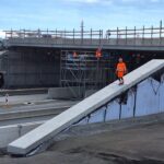 Aktuálně jsou dokončovány práce ve středním dělícím pásu dálnice, kde budujeme nový systém odvodnění. V místě stavby je po stranách dokončováno také oplocení dálnice. Nejintenzivnější činnost je ale nyní vidět na obou mostních objektech, které tvoří přibližně polovinu prstence budoucí okružní křižovatky nad dálnicí. Zde už se chystá pokládka asfaltových vrstev. Koncem listopadu pak přijde na řadu jeden z nejnáročnějších bodů celé stavební operace. Dojde k demolici původního mostu, který nová mimoúrovňová křižovatka nahradí. Dopravu pak převedeme na její právě dokončovanou polovinu, respektive na její část blíže směru Turnov. Demoliční a odklízecí práce proběhnou během jediného víkendu a částečně omezí provoz na dálnici D10. V noci ze soboty na neděli pak bude dálnice v místě demoličních prací uzavřena úplně. Termín uzavírky je právě předmětem jednání uzavírkové komise.