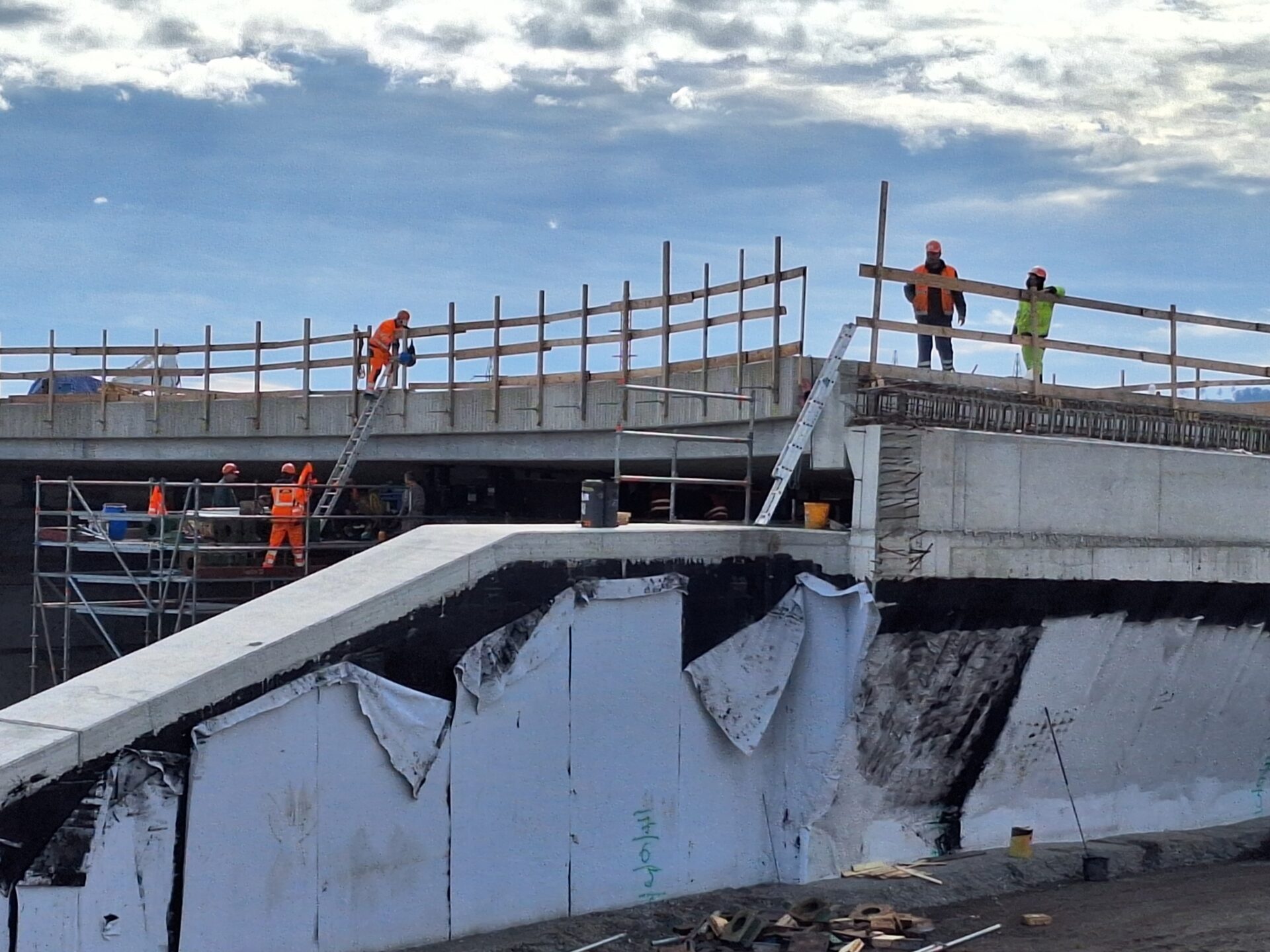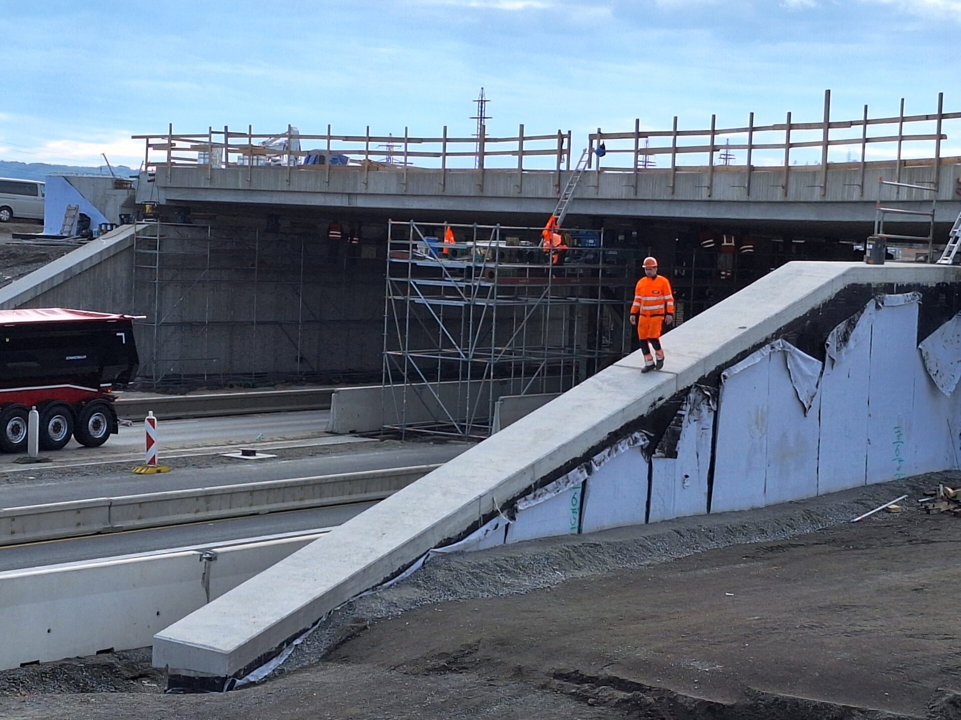 Aktuálně jsou dokončovány práce ve středním dělícím pásu dálnice, kde budujeme nový systém odvodnění. V místě stavby je po stranách dokončováno také oplocení dálnice. Nejintenzivnější činnost je ale nyní vidět na obou mostních objektech, které tvoří přibližně polovinu prstence budoucí okružní křižovatky nad dálnicí. Zde už se chystá pokládka asfaltových vrstev. Koncem listopadu pak přijde na řadu jeden z nejnáročnějších bodů celé stavební operace. Dojde k demolici původního mostu, který nová mimoúrovňová křižovatka nahradí. Dopravu pak převedeme na její právě dokončovanou polovinu, respektive na její část blíže směru Turnov. Demoliční a odklízecí práce proběhnou během jediného víkendu a částečně omezí provoz na dálnici D10. V noci ze soboty na neděli pak bude dálnice v místě demoličních prací uzavřena úplně. Termín uzavírky je právě předmětem jednání uzavírkové komise.