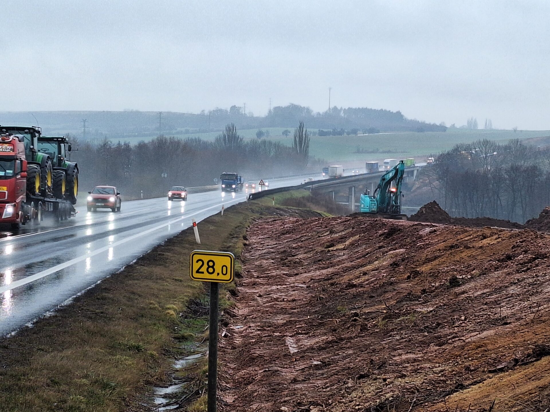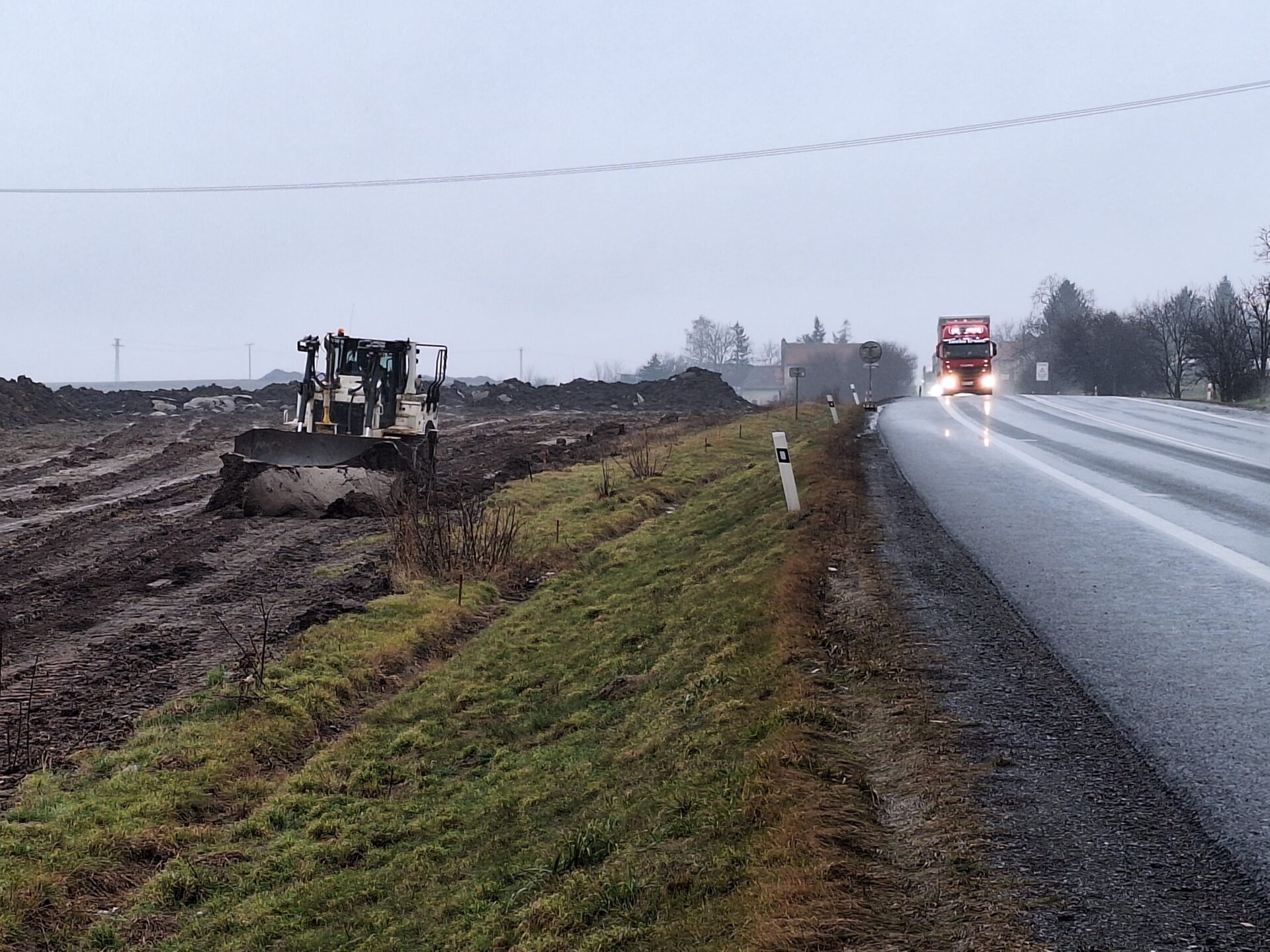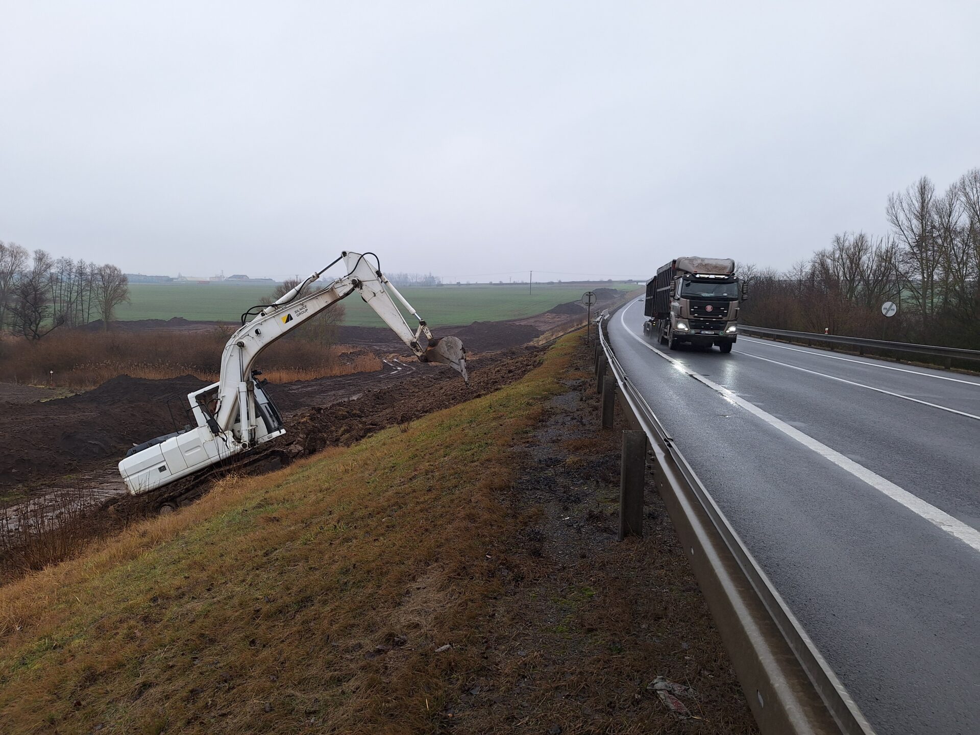 Zemní práce se odehrávají v těchto dnech také na dalších středočeských úsecích budoucí dálnice. Nezvykle teplé lednové počasí práce mírně komplikuje, a to kvůli značně podmáčenému terénu a zemině s vysokým obsahem jílu. Každý metr základu budoucí dálnice je tak bojem těžké techniky s přírodou. Neustále proto sledujeme meteorologické prognózy a konfrontujeme je s nastaveným harmonogramem. Ten se opírá o plán, jehož cílem je v první řadě vystavět nové jízdní pásy dálnice vedle stávající silnice I/7. Po jejich dokončení na ně převedeme dopravu a silnici I/7 postupně přebudujeme na druhý jízdní pás dálnice. Toto řešení umožní efektivnější postup prací a zejména na plynulost dopravy během stavby bude mít minimální dopady.