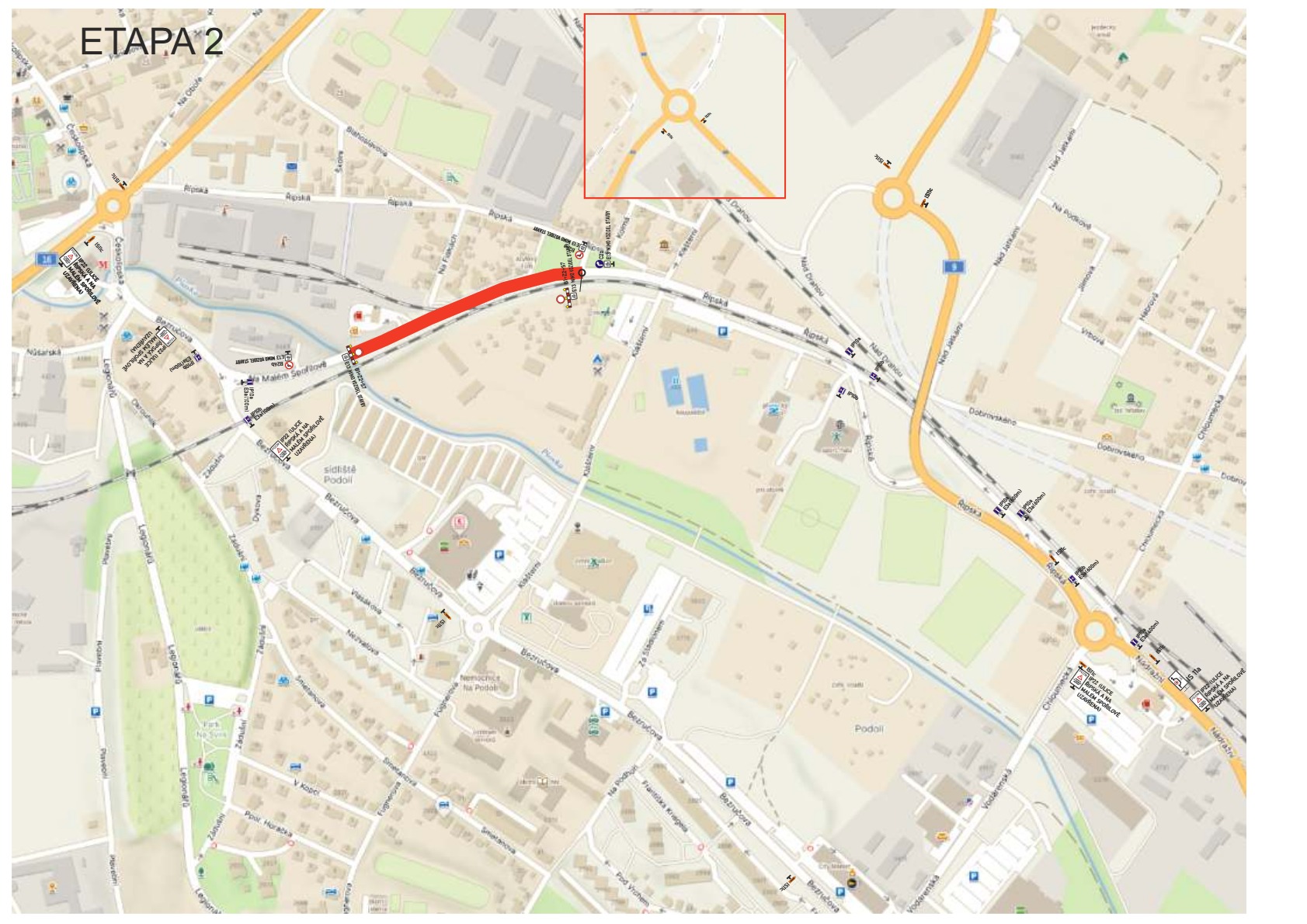 Na stavbě, kterou jsme zahájili loni v listopadu, proběhla v uplynulých týdnech demolice tří bývalých drážních objektů. Na 3 000 tun suti bylo svezeno na skládku a ekologicky bude zlikvidováno. Následovat bude nyní další fáze, kdy dojde k výměně vozovky v ulici Řípské, což si vyžádá dopravní omezení v podobě úplné uzavírky. Ta byla Silničním správním úřadem Středočeského kraje schválena v termínu od 3. února 2025 do 30. června 2025.