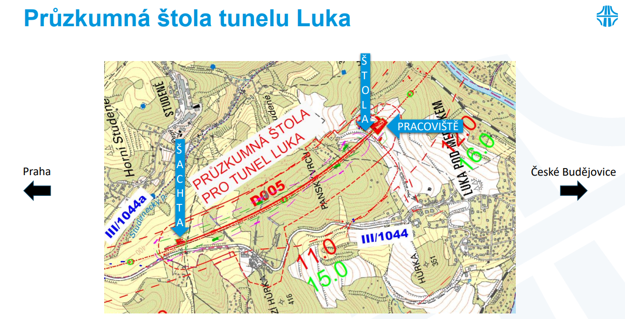 Ředitelství silnic a dálnic s.p. vybralo zhotovitele podrobného geotechnického průzkumu pro tunel Luka, který je plánovaným stavební objektem na budoucí středočeské části dálnice D3 v úseku Jílové – Hostěradice. Součástí geotechnického průzkumu bude i ražba průzkumné štoly.