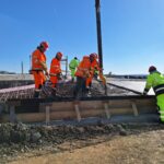 Příznivější počasí nyní umožňuje provádět veškeré naplánované práce. Denně se na nich podílí až 100 dělníků, kterým je k dispozici množství těžké techniky, bagry, jeřáby, domíchávače, nákladní vozidla a další potřebná výbava. Práce probíhají na několika frontách současně. Jde například o betonáž přechodové desky u posledního z mostních objektů, který tvoří jeden ze segmentů budoucí okružní křižovatky nad dálnicí. Instalována je kabeláž veřejného LED osvětlení, kterým bude prostor křižovatky nasvícen. Jednou z dílčích operací je rovněž budování komplexního systému odvodnění. To mimo jiné zahrnuje i drenáže a žlaby umístěné podél tělesa dálnice. Mohutnými jeřáby jsou instalovány portály a poloportály nad dálnicí, které ponesou informativní dopravní značky navádějící řidiče do jednotlivých směrů. Od půlky dubna je v plánu pokládka asfaltového souvrství na přibližně 300 metrech jízdního pásu dálnice směr Praha, v prostoru přestavované mimoúrovňové křižovatky.