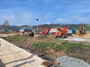 Na rekonstruované trase mohou projíždějící řidiči vidět každý den velké množství těžké techniky a nasazení dělníků. Od března, kdy jsme stavební akci zahájili, se podařilo vyměnit povrch na více než polovině pravého jízdního pruhu. Značné úsilí také věnujeme rekonstrukci a modernizaci odpočívky Králův Dvůr – Počáply, která je teď zcela uzavřena. Zde je starý povrch přístupových komunikací a odstavných stání zcela pryč. Prostor máme odtěžen až do hloubky jednoho metru a pracujeme na rekonstrukci kanalizace a systému odvodnění. Odtěženou a vytříděnou zeminu svážíme nákladními auty na haldy, ze kterých ji posléze znovu odebereme a zapracujeme do stavby.