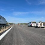 Větší část zařízení vysokorychlostního vážení (WIM) už se v rámci 1. etapy podařilo instalovat. Jde především o čidla umístěná ve vozovce, kterou jsme kvůli tomu museli odfrézovat a znovu položit asfaltové souvrství. V uplynulých dnech jsme obnovili vodorovné dopravní značení a upravili prostor středního dělícího pásu. Práce nyní pokračují navazující 2. etapou, instalací další části zařízení na portálu.