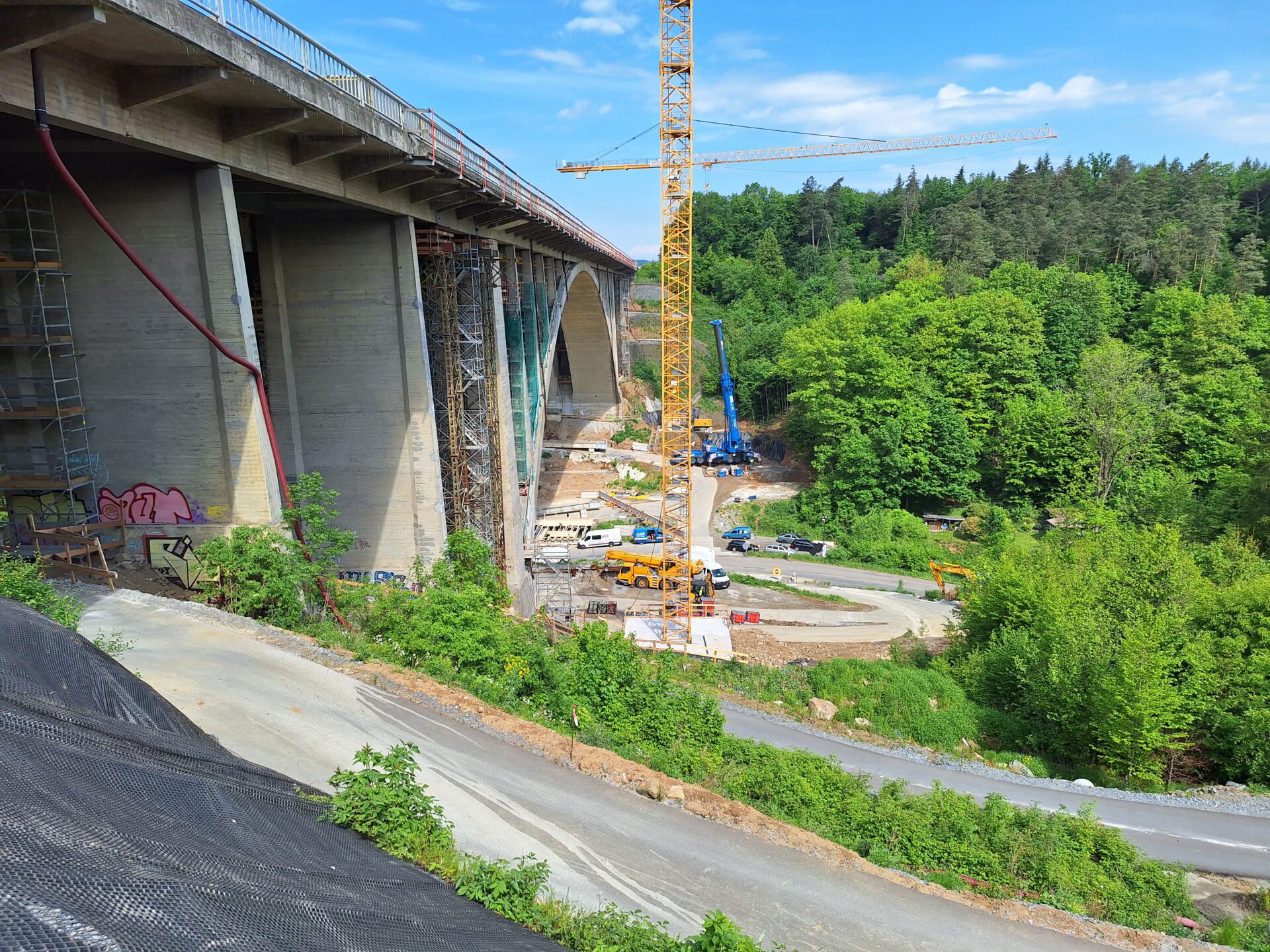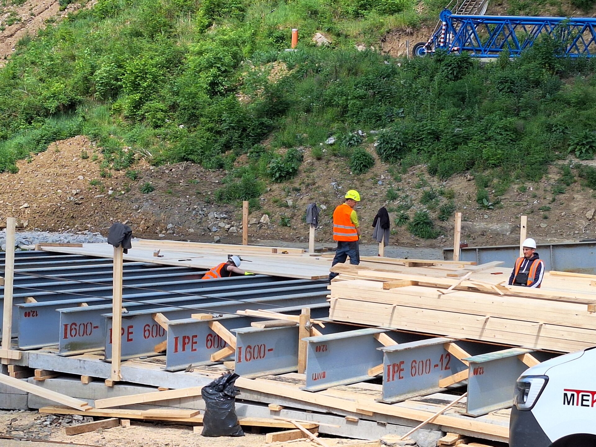 Od zahájení stavby jsme historický oblouk osadili čidly, která budou snímat jeho deformace během prací, vybudovali jsme obslužné komunikace pro stavbu v celkové délce 1 523 m, včetně systému odvodnění a postavili jsme 32 nových stojek z železobetonu vedle původních, na což jsme použili okolo 1 500 kubíků betonu.