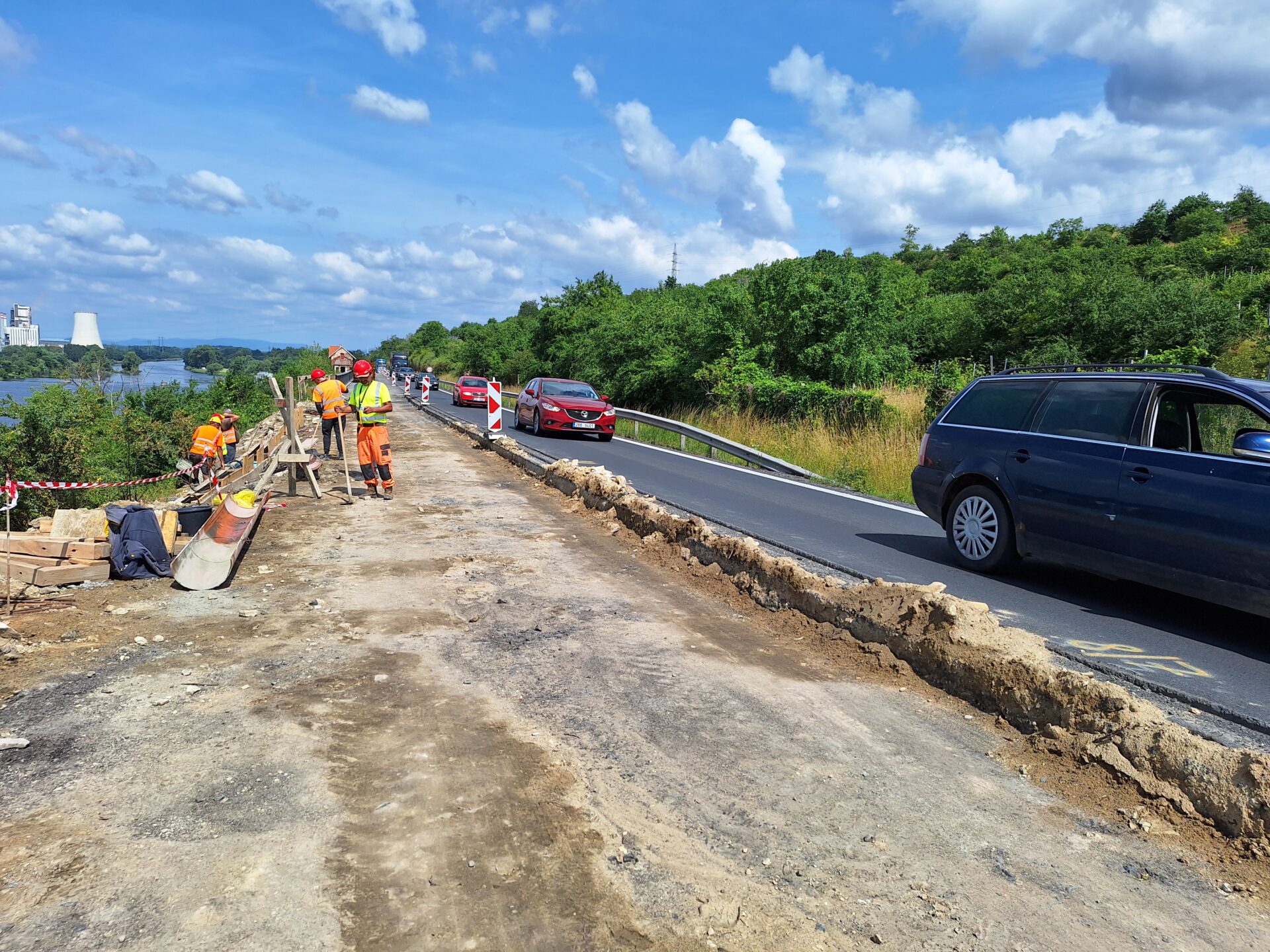 Na silnici I/9 mezi Liběchovem a Mělníkem pokračujeme s rekonstrukcí opěrné zdi a polovinou přilehlé vozovky. Stavební akce omezuje dopravu pouze částečně, místem se projíždí kyvadlově na semafory. S uvedením stavby do provozu počítáme po prázdninách.