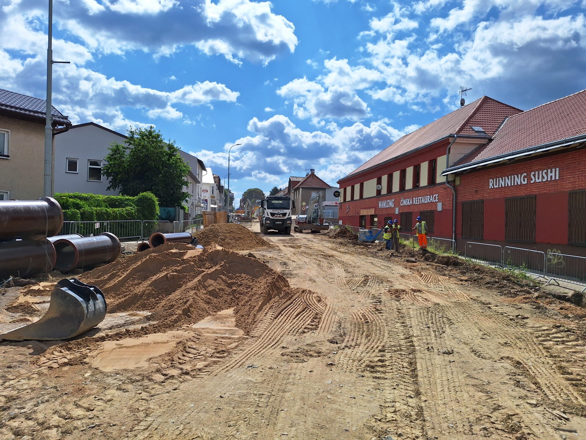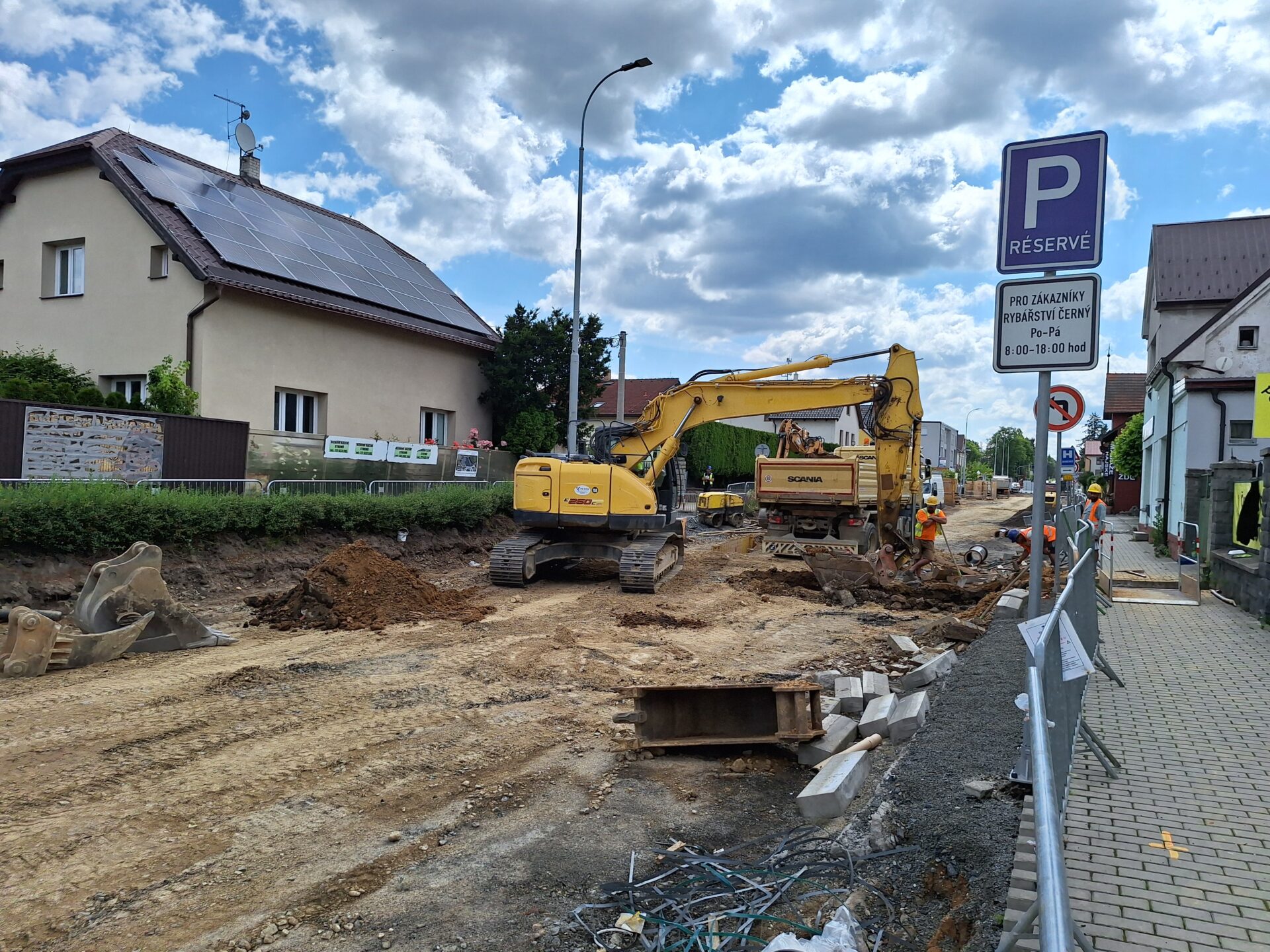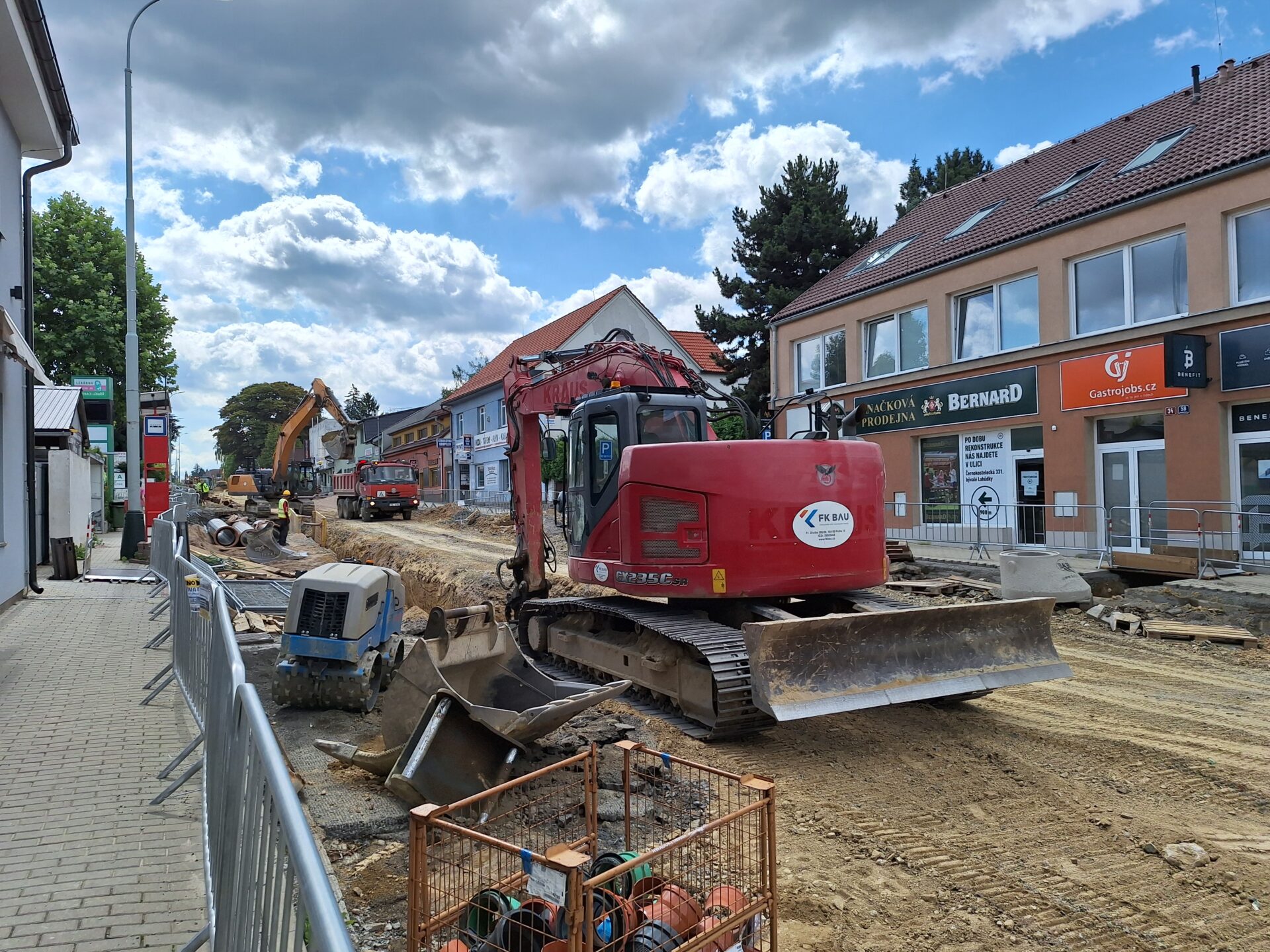 Rozsáhlá rekonstrukce nyní probíhá na přibližně 1 200 m dlouhém úseku mezi ulicemi U Disku a Tyrše a Fügnera. Prvních přibližně 200 m od ulice U Disku v těchto dnech dokončujeme. Betonujeme autobusové zálivy, pracujeme na chodnících, instalujeme nové veřejné osvětlení a chystáme se obnovit vodorovné dopravní značení. Od pondělí 30. června na těchto 200 m, včetně křižovatky Černokostelecké ulice se silnicí II/101 vrátíme provoz. Práce pak postoupí z druhého konce uzavírky o 150 m dál a zasáhnou zdejší křižovatku s ulicí Smiřických u nemocnice, kterou pro provoz uzavřeme. Na rekonstruovaném úseku máme aktuálně nasazeno 8 bagrů a 10 nákladních vozidel. Každý den, včetně sobot a nedělí, se na stavbě podílí v průměru až 60 dělníků. Stavební akci nadále provází úplná uzavírka a řidičům jsou k dispozici vyznačené objízdné trasy.