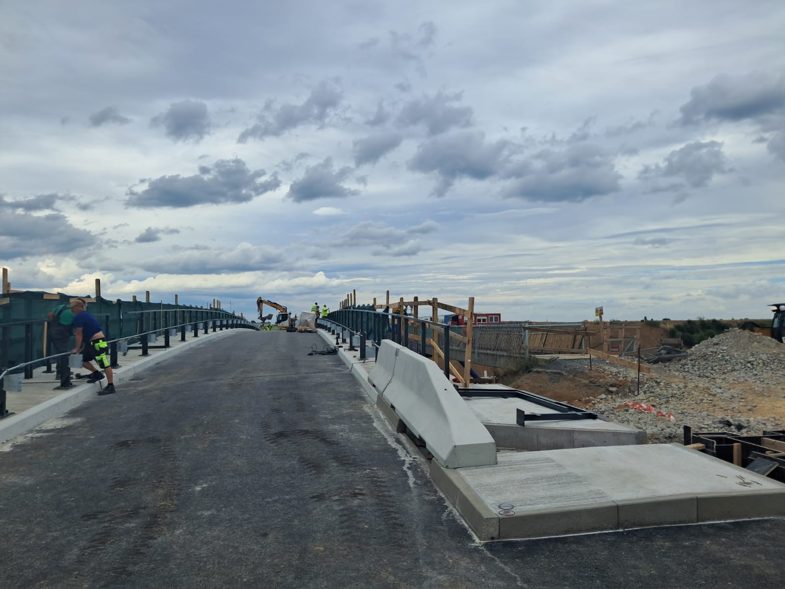 Výstavba nové lávky, která je od té původní vzdálena cca 10 m směr Slaný, značně pokročila. Nosná konstrukce již byla dokončena. Následovat budou zátěžové zkoušky, osazení lávky letištní technikou a její test. Zprovoznění nové lávky předpokládáme do 14 dnů.