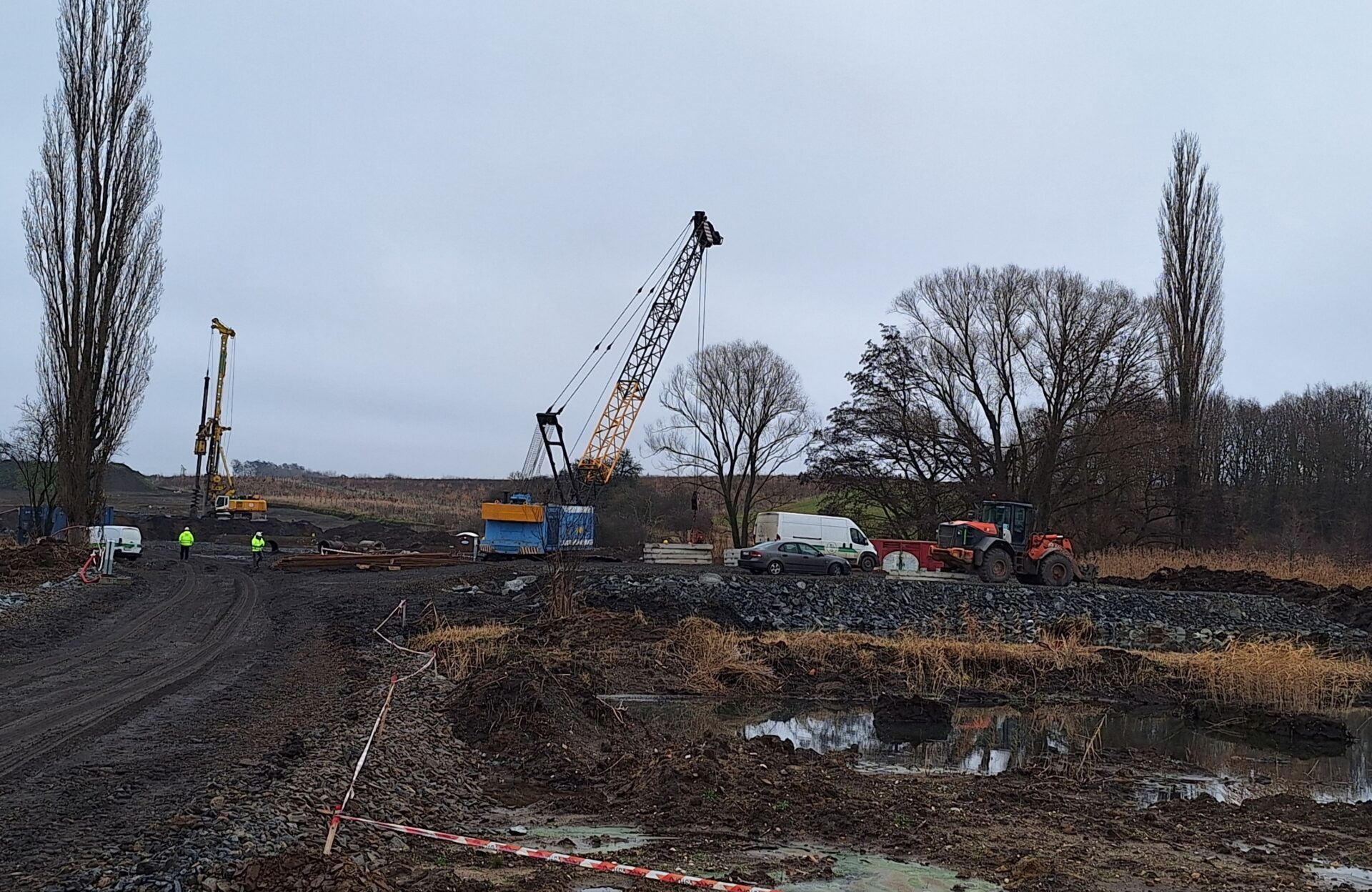 Pracuje se i na záporovém pažení za pomocí těžké techniky. Na rozlehlém staveništi jsou také vrtací soupravy, se kterými jsou vrtány piloty pro mostní objekty, probíhá svařování armatur. V přípravě jsou betonáže. Projekt zahrnuje rovněž výstavbu šesti mimoúrovňových křižovatek, osmi protihlukových stěn o celkové délce 1 106 m nebo dvaceti pěti zemních valů.
