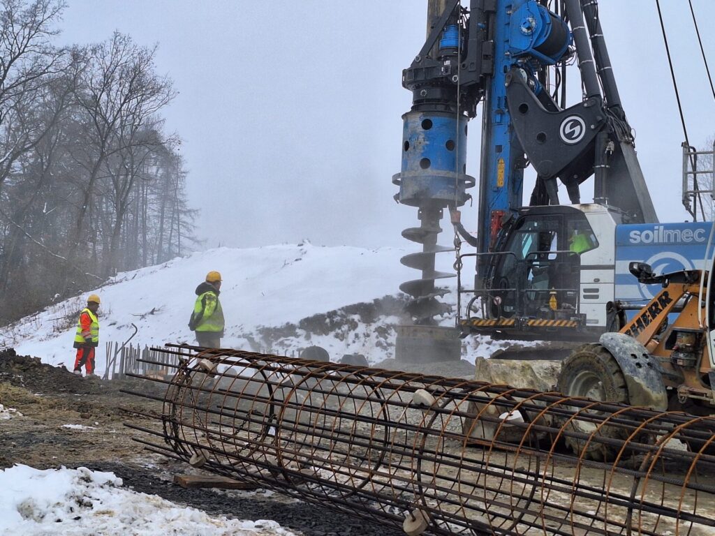„Celkem přemístíme více než dva milionu kubíků zeminy, kterou ale využijeme přímo na místě na násypy a zemní valy. Zakládáme čtyři mosty z celkových 23 na trase. Právě pro ně vrtáme piloty do hloubky 9 až 22 metrů s průměrem 1 200 milimetrů. V provozu máme najednou 4 vrtačky vysoké jako sedmipatrový obytný dům,“ vysvětluje ředitel stavby Roman Zbořil ze společnosti Skanska.