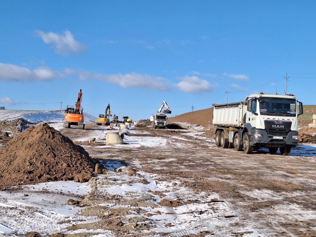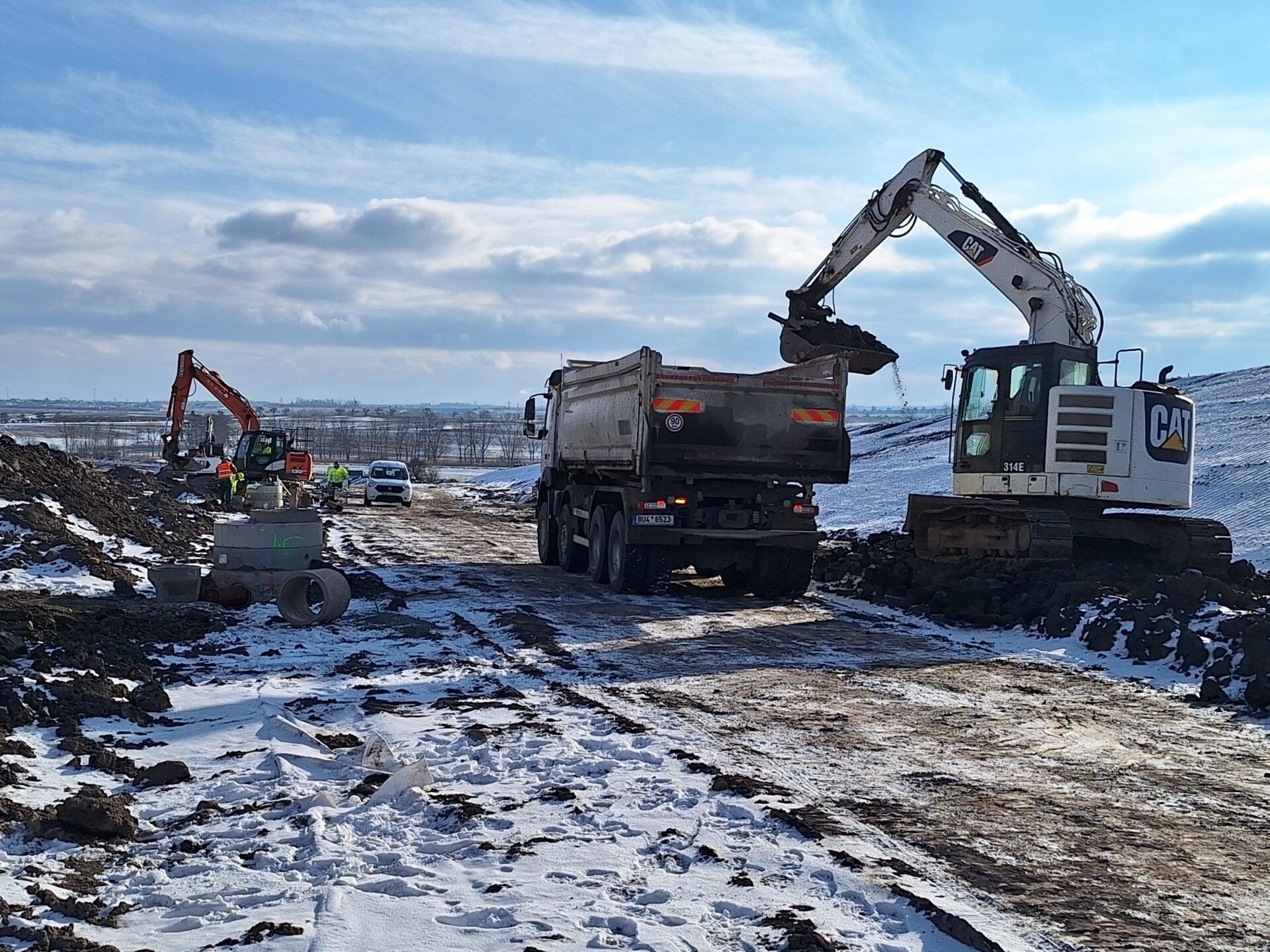 Dostavba dálnice D7 ve Středočeském kraji pokračuje také v zimě v neměnném tempu. Ze tří budovaných úseků je znát největší pokrok na úseku MÚK Slaný-západ – Kutrovice.