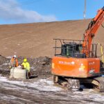 Na úseku MÚK Slaný-západ – Kutrovice probíhají nadále intenzivní zemní práce. U Lotouše budujeme násep vysoký až 12 m s délkou 350 m. Ten bude směr Slaný pokračovat mostem nad místní komunikací spojující Lotouš se sousední obcí Neprobylice. Provoz na ni je teď v místě prací částečně omezen a doprava pod budovaným mostem je vedena kyvadlově, na semafory. Na most směr Slaný v trase dálnice naváže zářez délky 200 m a hloubky až 8 m. V něm nyní budujeme systém odvodnění a kanalizaci, instalujeme betonové skruže. Práce se také soustřeďují na sanaci spodní stavby mostu v blízkosti MÚK Slaný-západ, který je na trase silnice I/7 a je po něm vedena doprava. Vedle sanovaného mostu na nové trase následně dostavíme jeho druhou polovinu v rámci jízdního pásu směr Chomutov.