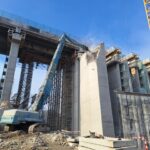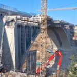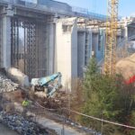 Původní nosná konstrukce už byla odstraněna, betonové bloky o váze až 50 tun odřezány a sneseny z výšky 40 metrů. Aktuálně je demolován poslední starý pilíř mostu. Betonová suť je od kovových částí separována, drcena na menší kusy a počítá se s jejím opětovným zapracováním do stavby. Odhadujeme, že z demolice starých částí mostu vznikne celkem na 10 000 tun recyklátu.