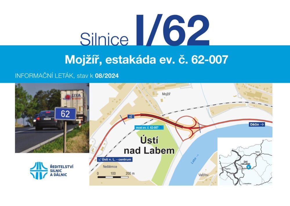 Rekonstrukci mostu Mojžíř (ev. č. 62-007) v Ústí nad Labem na silnici I/62 zahájíme koncem tohoto roku a potrvá do roku 2026. Realizace stavby proběhne v několika etapách a bude rozdělena do dvou stavebních sezón.