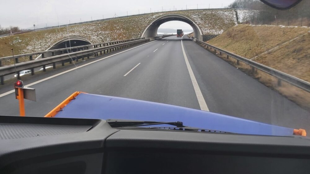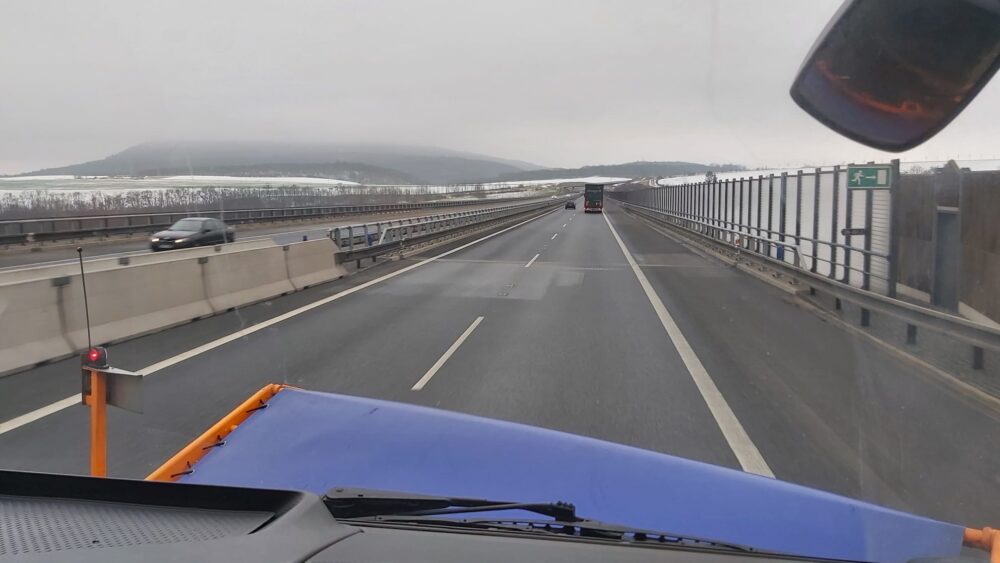 Na dálnici D8 dnes proběhla v rámci zimní údržby kontrolní jízda, při níž provádíme preventivní posyp vozovky. Do terénu vyrazil čtyřkolový vůz s provozní hmotností 18 tun, který je plně naložen 5 tunami soli a 6 tisíci litry solanky. Řidič podle potřeby nastaví množství posypu od 5 do 50 g na 1 m2 s rozsahem až 12 metrů. Výjimku pak tvoří tunely, kde se posyp neprovádí.
