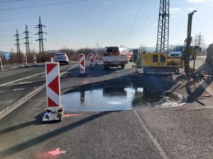 Dnes byly zahájeny vrtné práce na silnici I/13 směr Teplice na odbočce k Hostomicím, kde došlo k poklesu komunikace z důvodu historické důlní činnosti. Přibližně za dva týdny budou následovat injektážní vrty a dojde k zabezpečení podloží, což bude trvat asi jeden měsíc. Následně ze zahájí práce na silnici – odfrézování, odstranění podložních vrstev a položení nového asfaltu. Na místě je pro řidiče zúžený pravý jízdní pruh a snížená rychlost na 30 km/h.