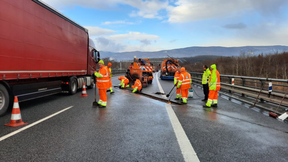 Hned jak pomine mlha, pustíme se na dálnici D8 do opravy výtluků v km 82 ve směru na Drážďany před tunelem Libouchec a v km 54 v jízdním pásu ve směru na Prahu. V místě prací prosím počítejte s dopravním omezením, kde bude provoz sveden do jednoho jízdního pruhu. Opravený asfalt musíme nechat vytvrdnout a předpokládáme, že v nočních hodinách provoz obnovíme.