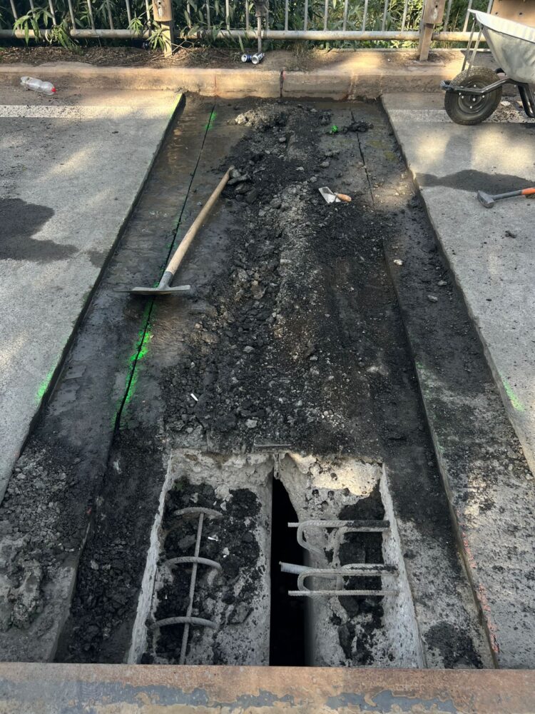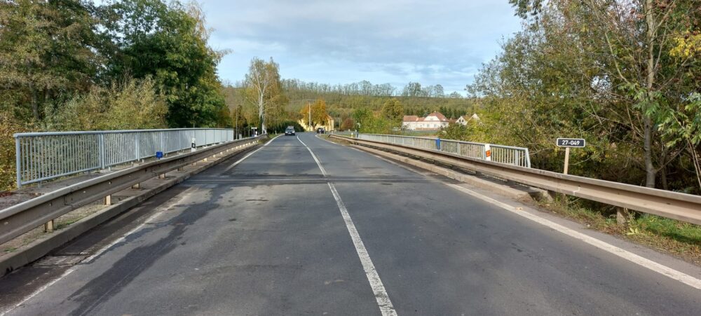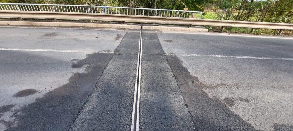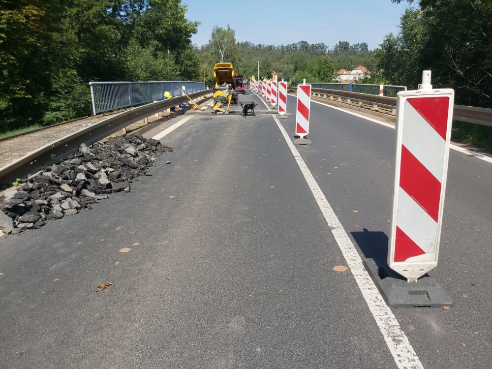 Na mostě (ev.č. 27-049) v Blšanech na silnici I/27 jsme dokončili opravu mostních závěrů a místo je opět obousměrně průjezdné. Dokončili jsme pokládku asfaltu, nyní provedeme zálivky a do konce týdne zhotovíme vodorovné dopravní značení.