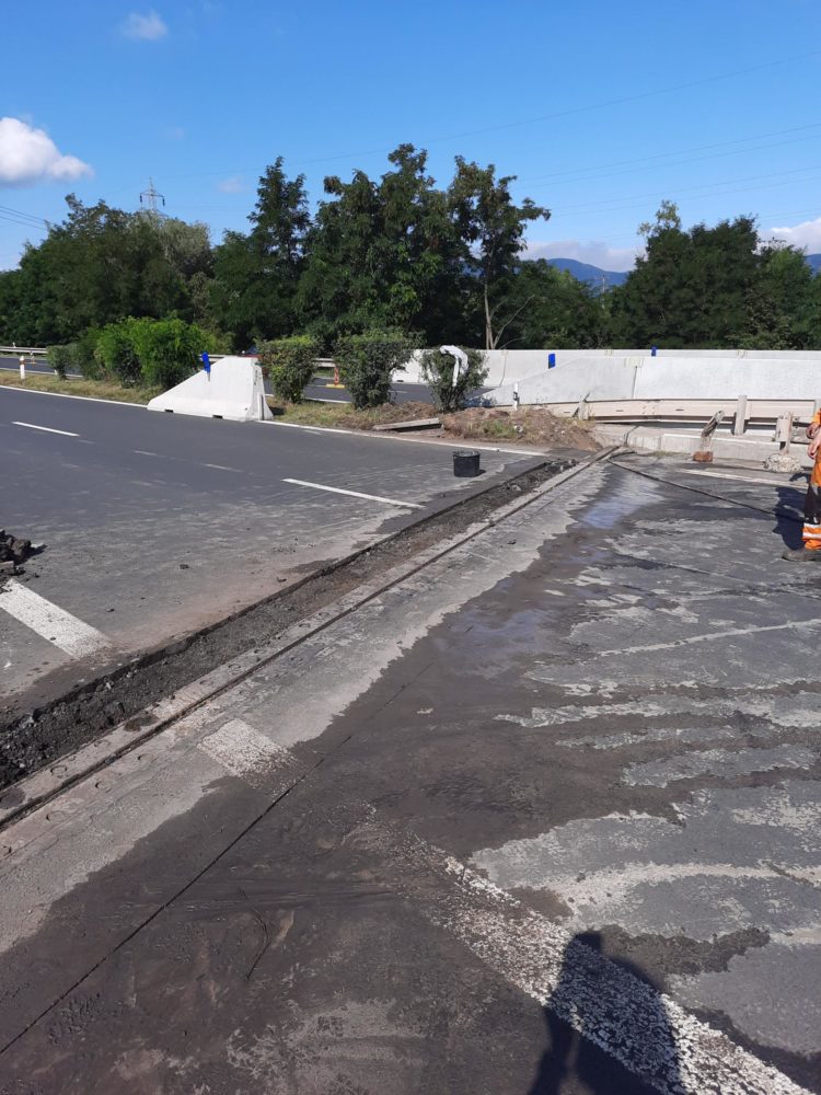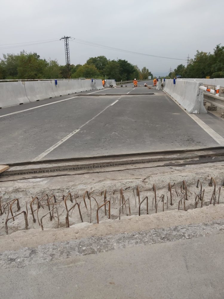 V uplynulých dnech zde byly osazeny nové mostní dilatační závěry a dnes probíhá jejich betonáž. Doprava ve směru na Bílinu je převedena do druhého jízdního pásu, kde je zachován obousměrný provoz se sníženou rychlostí na 50 km/h.