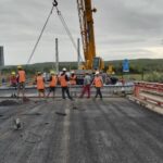 V Mostě u muzea na mostě přes silnici I/13 aktuálně za pomoci jeřábu osazujeme dva mostní závěry o celkové hmotnosti přesahující dvě tuny.